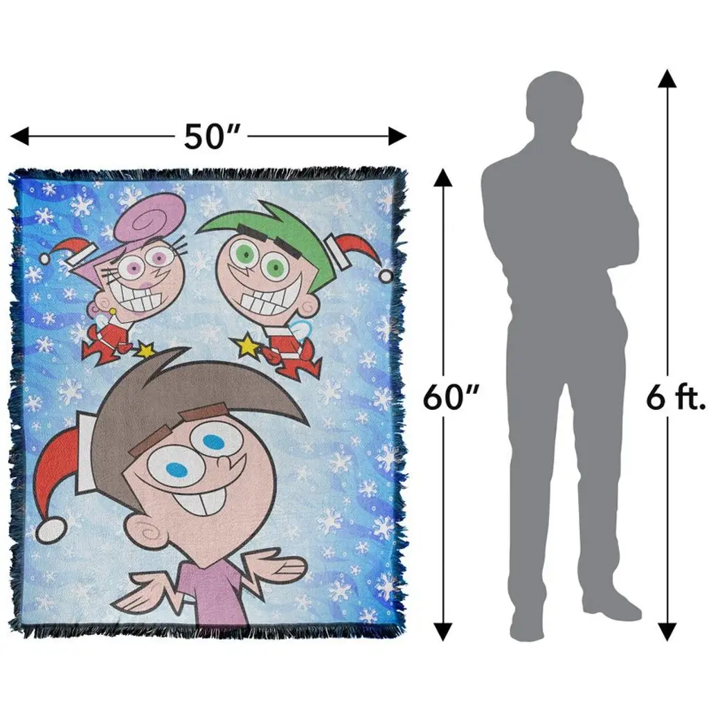 Fairly Oddparents Merry Fairy Timmy Wanda Cosmo Blanket 50"x60" Woven Tapestry