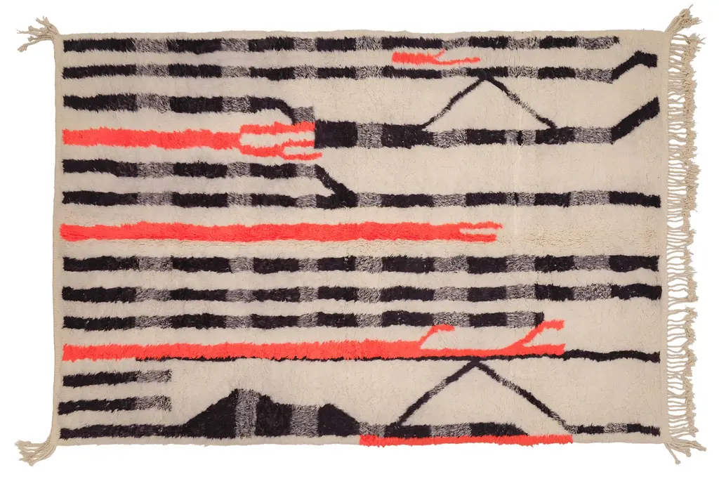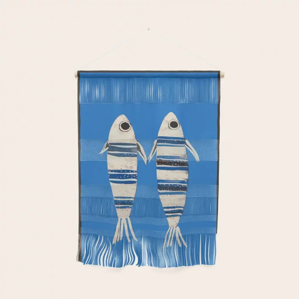 Depicting a zigzagging motif of Andean fish, this tapestry from Peru is designed by David Laura Zanabria. He hand-weaves the wall hanging of wool, dying the yarns with vibrant colors that come together for an intricate composition that brings the beauty of the sea to your home.