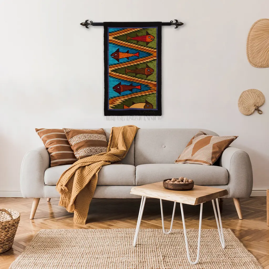 Fish-Themed Wool Tapestry From Peru- Andean Fish