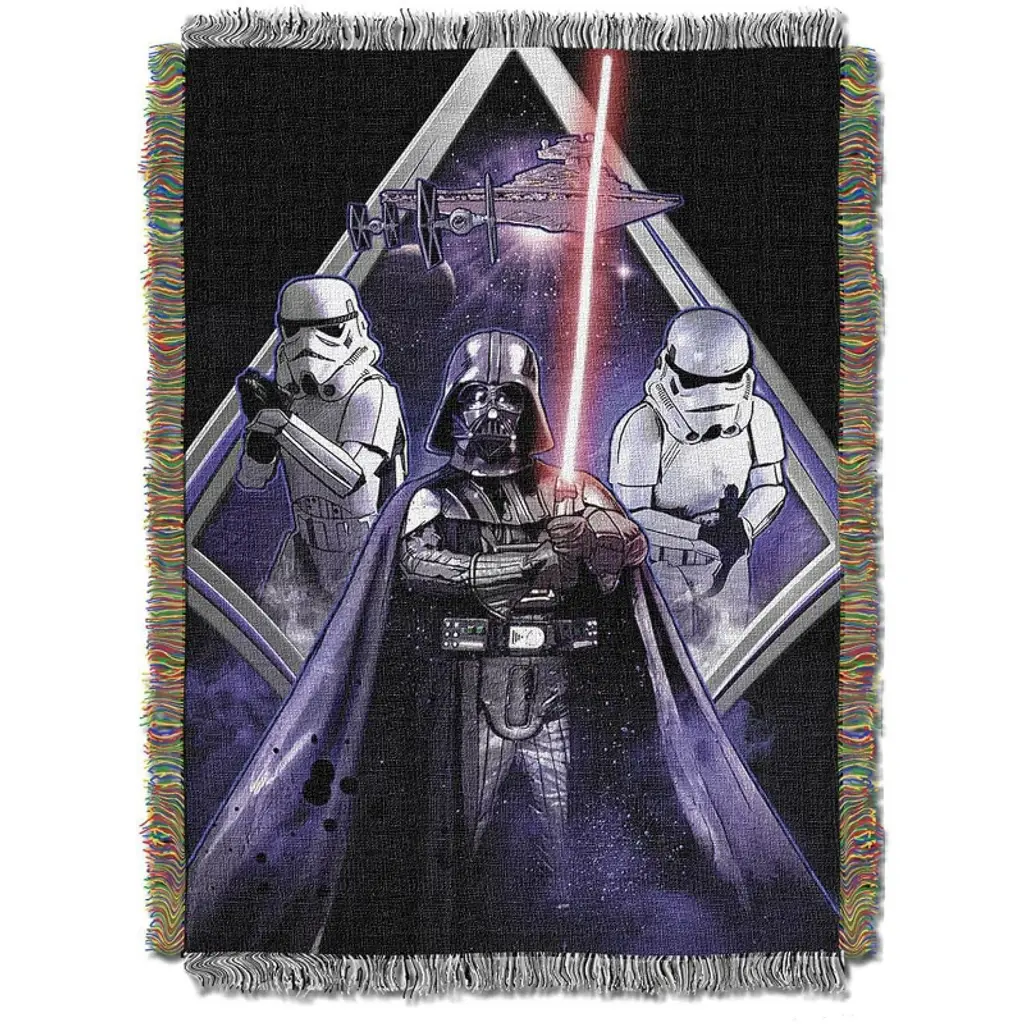 Cozy up with the WOVEN THROW BLANKET (50" x 60"), a must-have for movie nights, gaming sessions, or adding a stylish touch to your space. Made with a 530 GSM fabric weight, this generously sized blanket offers the perfect blend of warmth and comfort, making it ideal for beds, couches, wall décor, or travel. Crafted from a durable blend of 60% polyester and 40% cotton, it features SHRINK AND FADE RESISTANT colors, ensuring your favorite pop culture icons stay vibrant over time. The hand-printed design, created through a professional dye sublimation process, is featured on one side, delivering bold, high-quality artwork inspired by the biggest names in movies, TV shows, superheroes, and music. EASY TO CARE FOR, this machine washable and tumble-dry safe blanket is hassle-free to maintain. Proudly OFFICIALLY LICENSED, it showcases stunning designs created by our in-house graphic art team. A perfect gift for any pop culture fan, whether for Christmas, birthdays, holidays, Mother’s Day, Father’s Day, Valentine’s Day, anniversaries, graduations, housewarmings, or just because, this woven throw adds personality and fandom flair to any home, office, or entertainment space.
