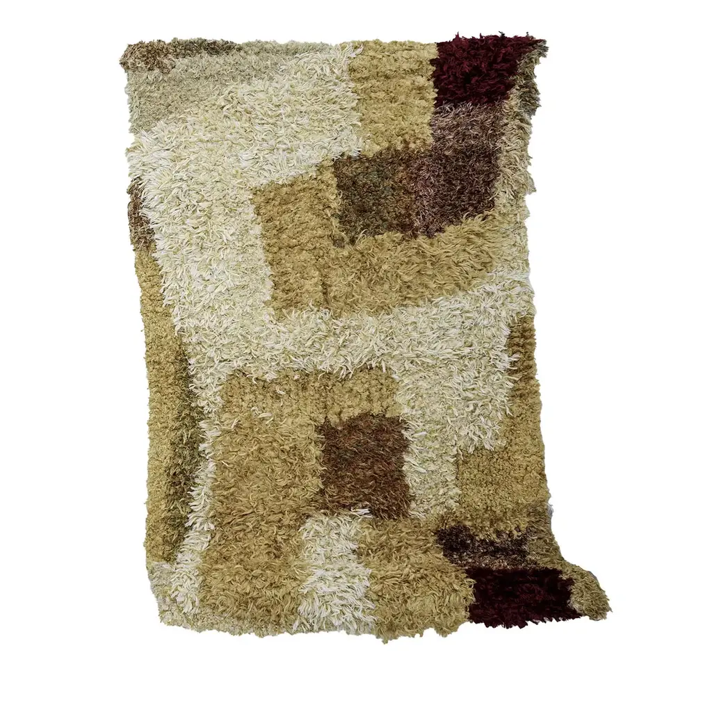 Fuego Tapestry / Rug by Vera SomloUnique pieceDimensions: 170 x 80 cmMaterials: Organic Wool, Ilama FiberHandspun and embroidered with pure organic wool and llama fiber. Dyed with native plants.Vera was born in Bariloche Argentina in 1979. In 1997 Vera relocated to Spain where she majored in Aesthetic Cinematography at the Valladolid Film Department graduating with a degree in audiovisual communications. Post graduation Vera worked as a director and camerawoman as well as working with the Spanish Film Festival of Málaga working in documentary category of the festival for 8 years. In 2006 she took up painting under the tutelage of Silvina Gardonio whom she continues to study under. She has also taken part in a contemporary jewelry workshop under Mabel Pena and sculpture under Jardiel Valente. Vera continues to work as a photographer as well as teaching photography, drawing and painting. Additionally Vera also creates hand made weavings in her studio which are embroidered, spun and dyed with native plants using a variety of materials including Patagonian Sheep Wool which can be used as throws, rugs or wall hangings. Vera’s work has been seen in individual and collective expositions in a variety of museums and galleries in Argentina, Spain, Morocco, New York and China. Vera’s textile work has won the First Price of the FNA [National Foundation of Arts] in Argentina 2017.