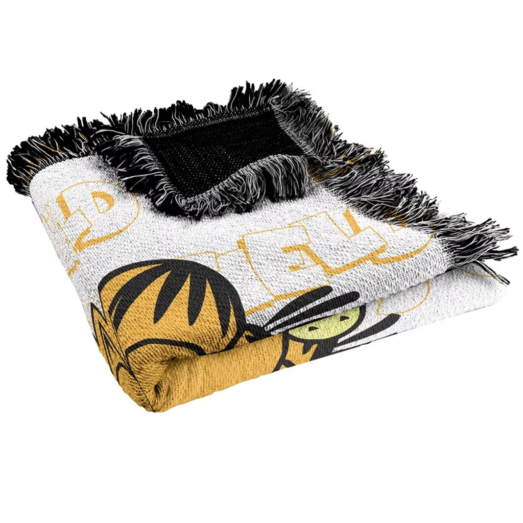 Cozy up with the WOVEN THROW BLANKET (50" x 60"), a must-have for movie nights, gaming sessions, or adding a stylish touch to your space. Made with a 530 GSM fabric weight, this generously sized blanket offers the perfect blend of warmth and comfort, making it ideal for beds, couches, wall décor, or travel. Crafted from a durable blend of 60% polyester and 40% cotton, it features SHRINK AND FADE RESISTANT colors, ensuring your favorite pop culture icons stay vibrant over time. The hand-printed design, created through a professional dye sublimation process, is featured on one side, delivering bold, high-quality artwork inspired by the biggest names in movies, TV shows, superheroes, and music. EASY TO CARE FOR, this machine washable and tumble-dry safe blanket is hassle-free to maintain. Proudly OFFICIALLY LICENSED, it showcases stunning designs created by our in-house graphic art team. A perfect gift for any pop culture fan, whether for Christmas, birthdays, holidays, Mother’s Day, Father’s Day, Valentine’s Day, anniversaries, graduations, housewarmings, or just because, this woven throw adds personality and fandom flair to any home, office, or entertainment space.
