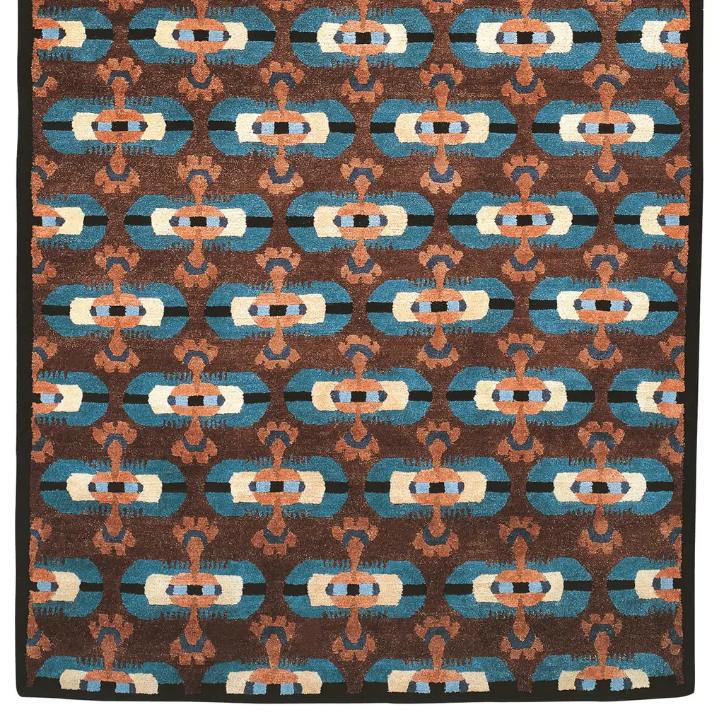This modern carpet was hand made using Tibetan wool, one of the finest natural fibers in the world, because the animals freely graze at very high altitudes. The result is a wool that is resistant and rich in lanolin and here, hand-knotted using ancient Tibetan techniques by skilled artisans in Nepal, produces a final product that is timeless, thanks to its high-quality materials and the modern design by George J. Sowden (who also signed the 36 pieces that make up this limited series. Handmade by craftsmen in Uma technique. Life's Commodities 2003 Collection.