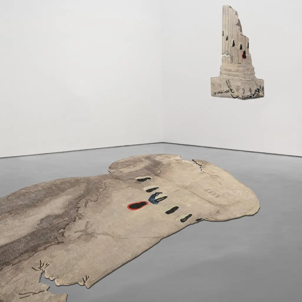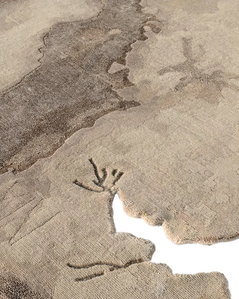 Fragment II, Dinodo Studio in collaboration with Dominik Scharfer, is a captivating piece from the Preliminary Aftershocks collection. Inspired by the evocative ruins of ancient Rome, this limited-edition artwork masterfully blends contemporary design with historical texture.Measuring 9.8 x 6.4 ft (195 x 300 cm), it is meticulously hand-knotted in Nepal from a luxurious mix of Himalayan wool, linen, and natural silk. The refined palette features stone, cream, black, natural wool, navy, and red tones, evoking a richly detailed surface that captures the beauty of fragmented relics—scratches, fallen columns, and fractured busts—symbolizing the remnants of a grand civilization.Edition of 9 + 1 Artist Proof, accompanied by a Certificate of Authenticity, numbered and signed by the artist. Customizable in size while preserving its aspect ratio, making it a timeless addition to sophisticated interiors. Approximately 200,000 knots/sqm.