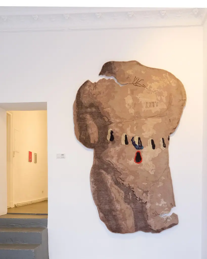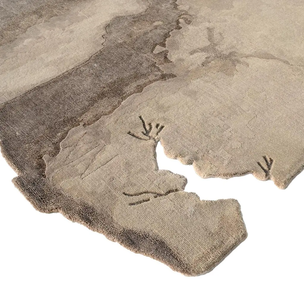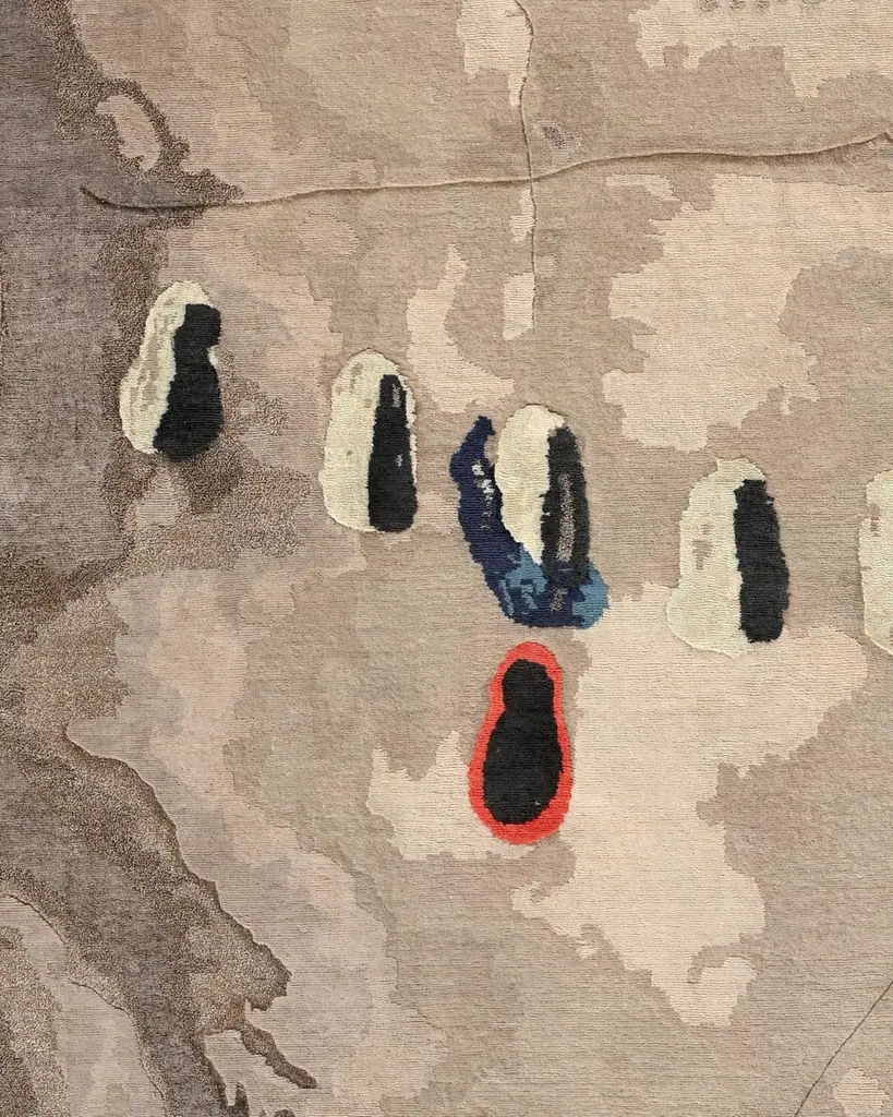 Fragment II, Dinodo Studio in collaboration with Dominik Scharfer, is a captivating piece from the Preliminary Aftershocks collection. Inspired by the evocative ruins of ancient Rome, this limited-edition artwork masterfully blends contemporary design with historical texture.Measuring 9.8 x 6.4 ft (195 x 300 cm), it is meticulously hand-knotted in Nepal from a luxurious mix of Himalayan wool, linen, and natural silk. The refined palette features stone, cream, black, natural wool, navy, and red tones, evoking a richly detailed surface that captures the beauty of fragmented relics—scratches, fallen columns, and fractured busts—symbolizing the remnants of a grand civilization.Edition of 9 + 1 Artist Proof, accompanied by a Certificate of Authenticity, numbered and signed by the artist. Customizable in size while preserving its aspect ratio, making it a timeless addition to sophisticated interiors. Approximately 200,000 knots/sqm.