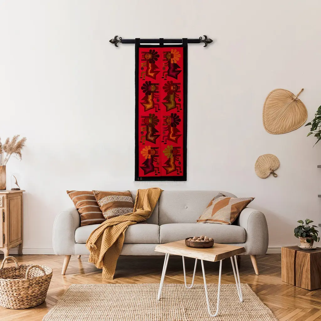 Handloomed Cultural Wool Antarqui Tapestry In Red And Brown- The Antarqui Myth