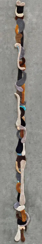 Opus xxxix handmade wool tapestry by mira sohlen dimensions: d 40 x h 625 cm materials: wool weight: 12 kg opus xxxix each tapestry is called opus followed by its chronological roman numeral in the order they were created. Opus is a latin word meaning a work, used to mean a particular piece of music by a composer. Furthermore, when mira creates her tapestries she never envisions the final outcome; her vision is her process. Throughout the process, similar to the one of a musical composer, she aims to find patterns of beauty of form, harmony, and expression of emotion. It is as if different shapes are dancing and her aim is to capture just the right moment where opus becomes a visual and tactile form of music. Mira sohlén creates tapestries which are made from a unique method of tiling.