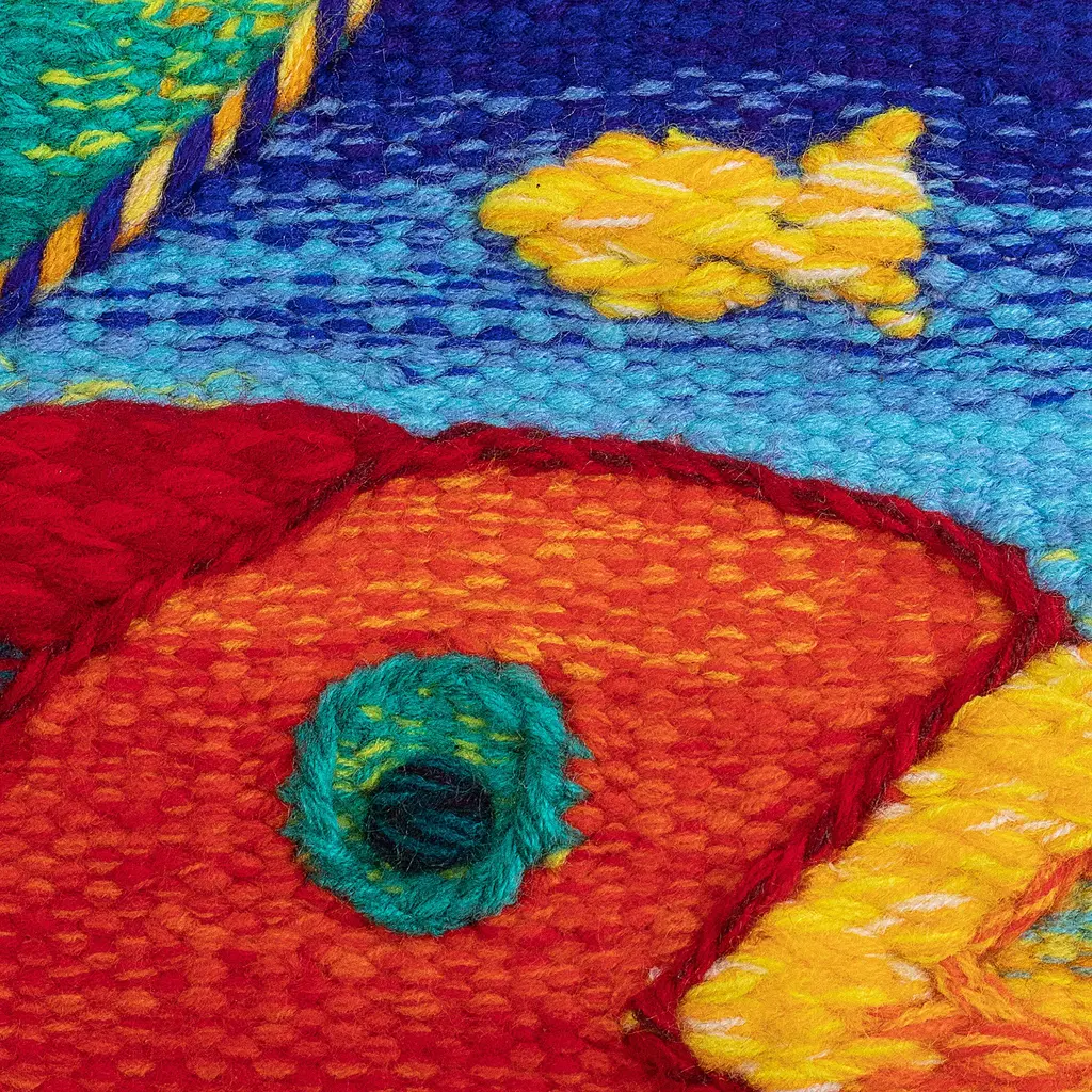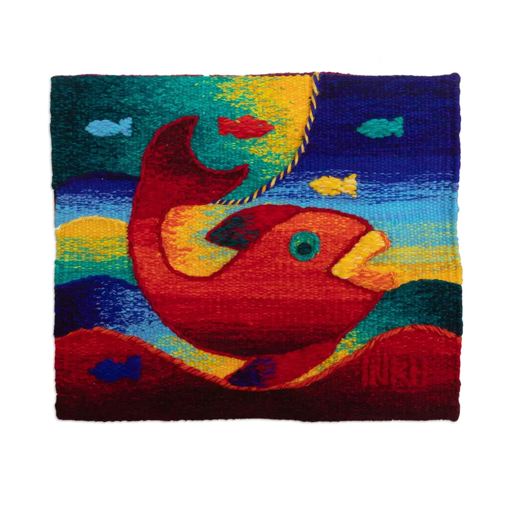 Handwoven Multicolored Alpaca Blend Fish Tapestry From Peru- Fruit Of The Sea