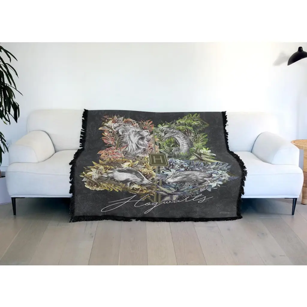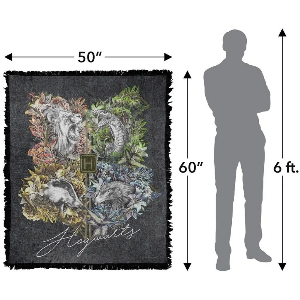 Harry Potter Floral Lines Crests Blanket 50"x60" Woven Tapestry