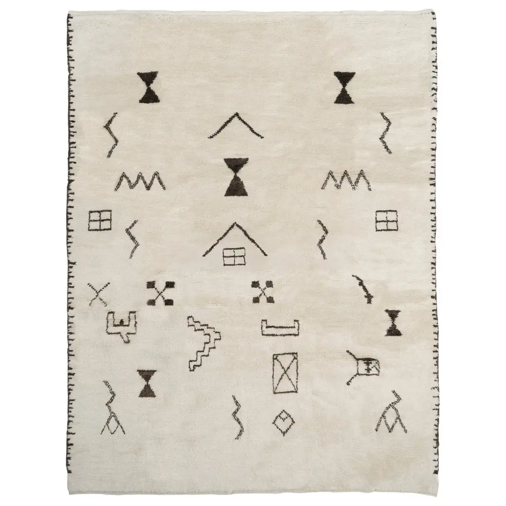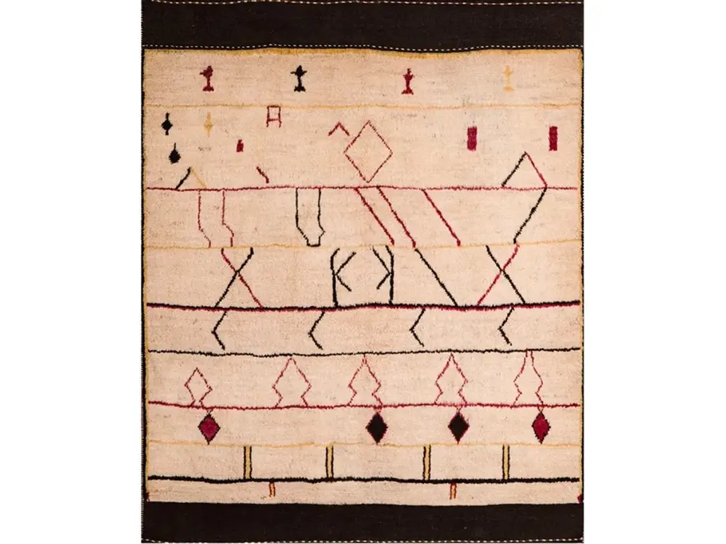 This rug is called "Leggere in fondo all'anima", an italian sentence that means "To read the depths of the soul". Hand-woven in Sardinia, this rug is characterized by recurring geometric shapes and colors that become an integral part of a timeless language. An innovative element is the use of Braille characters, which often conceal the meaning or the name of the textile artwork.