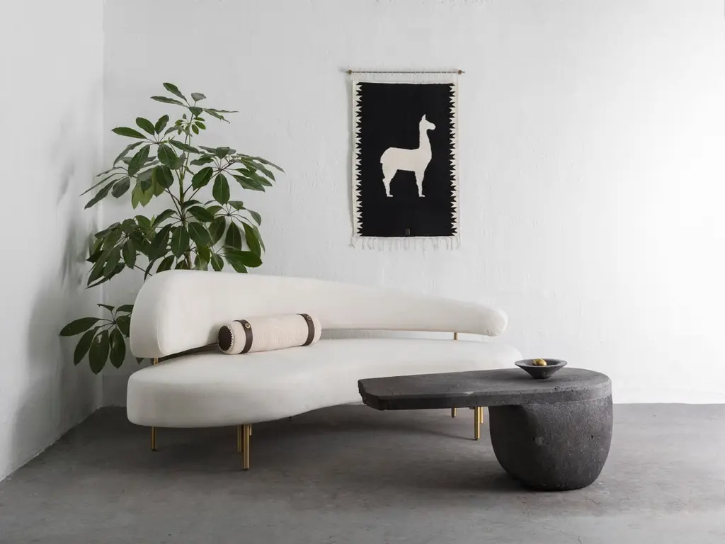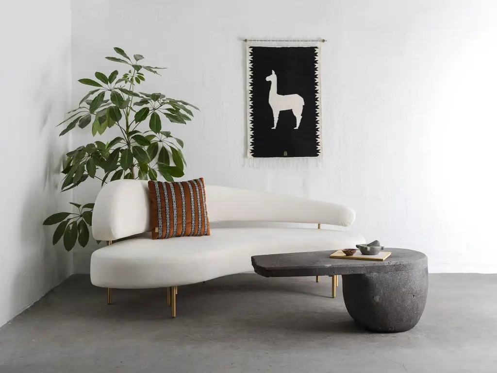 Handwoven sheep wool tapestry with wall-mounting lathed aged bronze bases, and stainless steel rod.Capturing the essence of the Andes, these pieces are created using ancient weaving techniques yet loomed through an innovative approach of traditional woven iconography. They are elegantly finished with bronze or stainless steel hanging rods, adding an additional touch of sophistication.SOULFUL OBJECTS represent a journey through our heritage and traditions. A family of objects that depict the autochthonous materials and artisan methods of Ecuador. The collection comprises an array of decorative and functional objects— bowls, candleholders, decorative pillows, and tapestries— showcasing materials such as hand-carved volcanic stone from the quarries of Chimborazo, Ecuador's highest and dormant volcano, opulent bronze, stainless steel, and sumptuous velvet.The designs collectively tell our story of Latin America. Every object is the result of a thoughtful approach to Ecuadorian material culture and iconography. Selecting the ideal artisan technique to produce a sophisticated, modern abstraction. An ideal platform for our artisans to embed their generational knowledge. Leaving their soul's signature on every seam, every crease, every chisel mark.ANDEAN studio’s practice is an exploration that highlights Ecuador's iconography and our Latin American essence. New items will be added to our ongoing collections every year, each bearing our equatorial design stamp and a distinct aesthetic.ARTISANS:Marco Panamá: Handwoven TapestriesEdison Simbaña: Bronze and Stainless Steel CNC Lathe