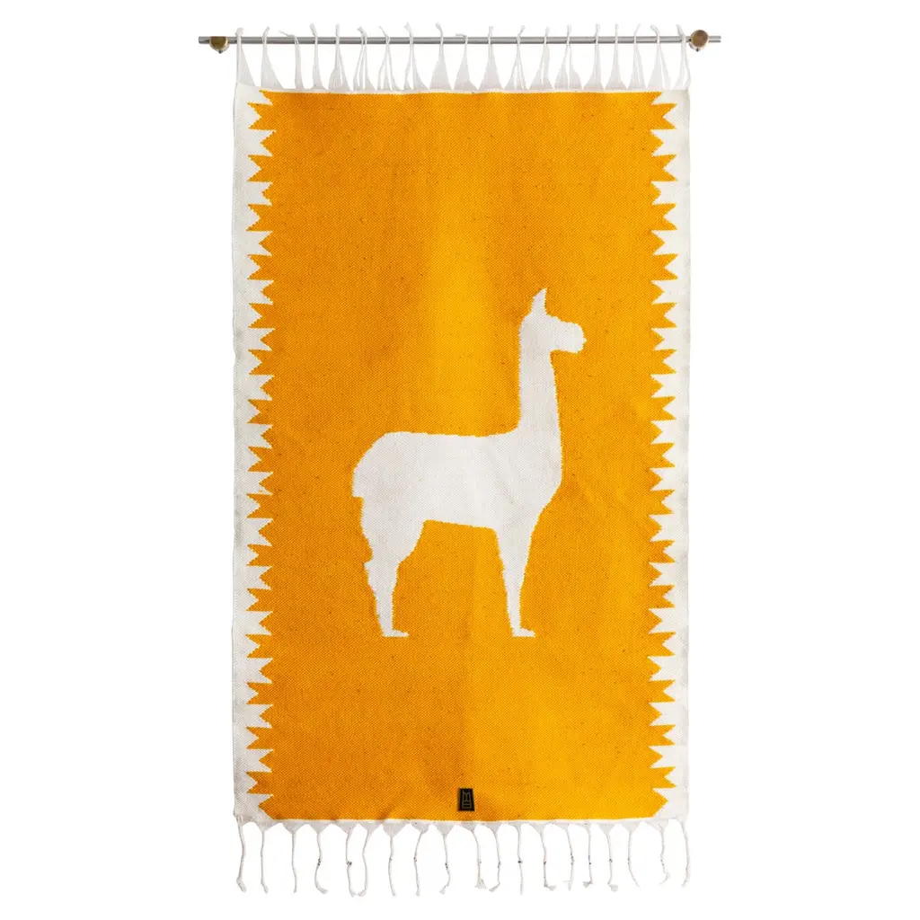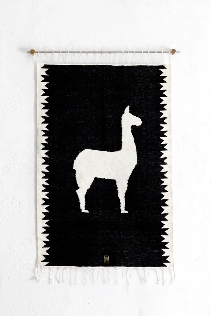Llama Sheep Wool Handwoven Tapestry, Aged Bronze Wall Mount, Black