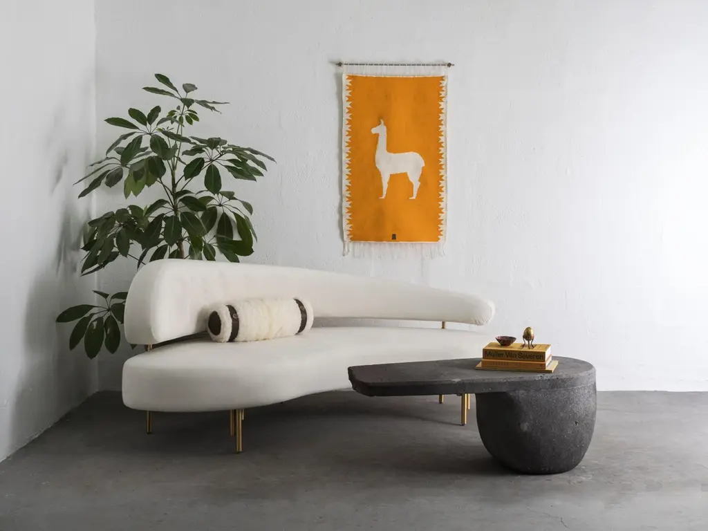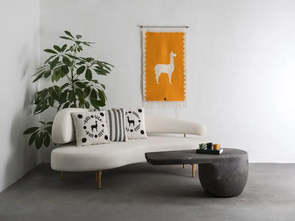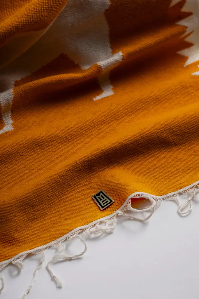 Handwoven sheep wool tapestry with wall-mounting lathed aged bronze bases, and stainless steel rod.Capturing the essence of the Andes, these pieces are created using ancient weaving techniques yet loomed through an innovative approach to traditional woven iconography. They are elegantly finished with bronze or stainless steel hanging rods, adding an additional touch of sophistication.SOULFUL OBJECTS represent a journey through our heritage and traditions. A family of objects that depict the autochthonous materials and artisan methods of Ecuador. The collection comprises an array of decorative and functional objects— bowls, candleholders, decorative pillows, and tapestries— showcasing materials such as hand-carved volcanic stone from the quarries of Chimborazo, Ecuador's highest and dormant volcano, opulent bronze, stainless steel, and sumptuous velvet.The designs collectively tell our story of Latin America. Every object is the result of a thoughtful approach to Ecuadorian material culture and iconography. Selecting the ideal artisan technique to produce a sophisticated, modern abstraction. An ideal platform for our artisans to embed their generational knowledge. Leaving their soul's signature on every seam, every crease, every chisel mark.ANDEAN studio’s practice is an exploration that highlights Ecuador's iconography and our Latin American essence. New items will be added to our ongoing collections every year, each bearing our equatorial design stamp and a distinct aesthetic.ARTISANS:Marco Panamá: Handwoven TapestriesEdison Simbaña: Bronze and Stainless Steel CNC Lathe