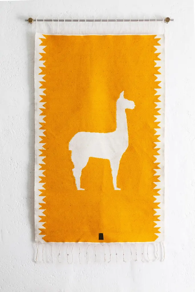 Llama Sheep Wool Handwoven Tapestry, Aged Bronze Wall Mount, Ochre