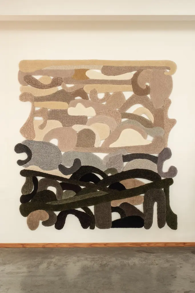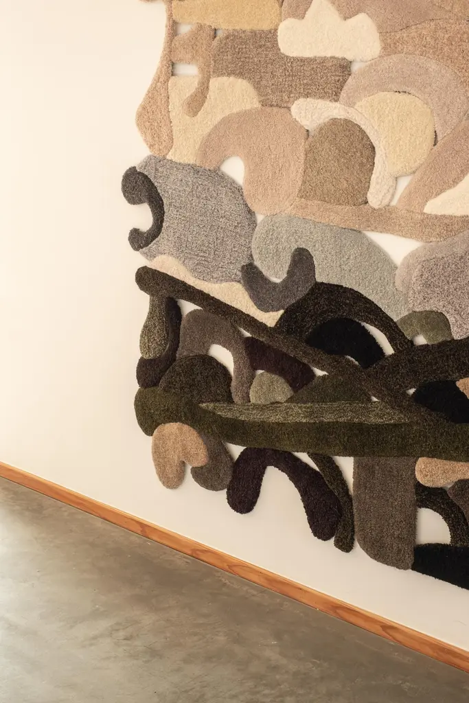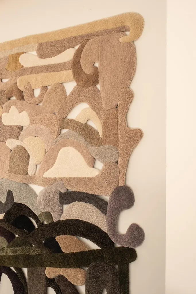 Monumental landscape espace XXXIV handmade wool tapestry by Mira SohlenDimensions: D 200 x H 200 cmMaterials: WoolWeight: 18 kgMonumental landscape espace each tapestry is called Opus followed by its chronological roman numeral in the order they were created. Opus is a latin word meaning a work, used to mean a particular piece of music by a composer. Furthermore, when Mira creates her tapestries she never envisions the final outcome; her vision is her process. Throughout the process, similar to the one of a musical composer, she aims to find patterns of beauty of form, harmony, and expression of emotion. It is as if different shapes are dancing and her aim is to capture just the right moment where Opus becomes a visual and tactile form of music. Mira Sohlén creates tapestries which are made from a unique method of tiling.Mira Sohlén (b. 1991) is a designer and artist based in Antwerp, Belgium. Originally from Sweden, Mira grew up in Paris and then studied fashion design both at the Amsterdam Fashion Institute and at the Gerrit Rietveld Academie.