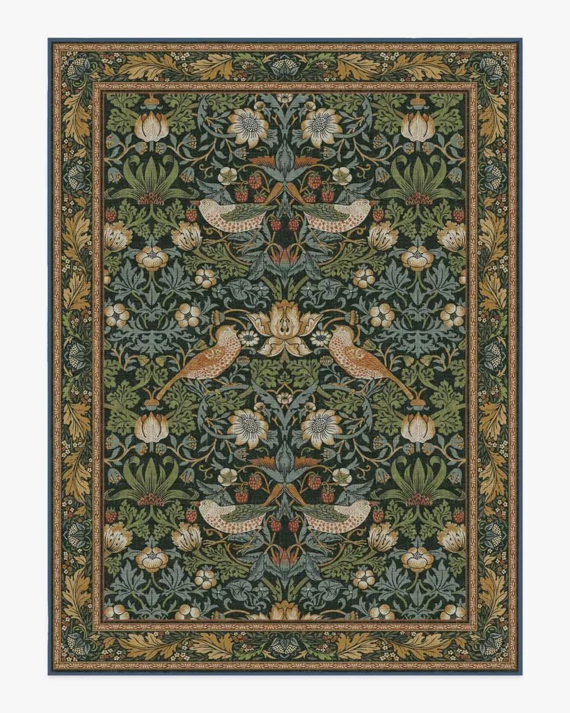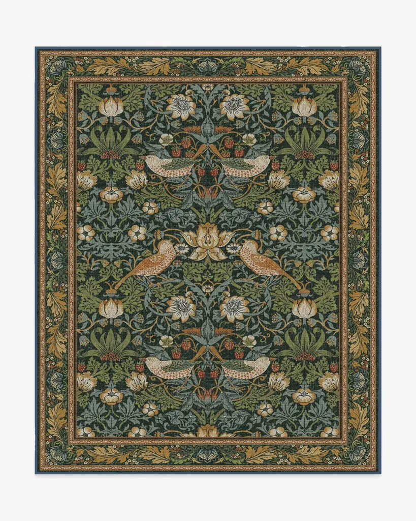 This tapestry was originally designed by William Morris probably in the 1880s. The style of this design, with swirling acanthus leaves dotted with birds, is evocative of the original aristolochia tapestries of the sixteenth century, which were a favourite source of inspiration for Morris. William Morris (1834-1896) became well-known as the founder of the firm of Morris & Company, whose workshops became established at Merton Abbey in Surrey. From studying an old French Arts and Crafts manual, Morris taught himself the technique of weaving, and spent many hours weaving his first experimental tapestry by hand in his bedroom at Kelmscott House in Hammersmith, London. Morris thereafter taught his workmen the technique, and is thereby attributed with reviving the craft of tapestry-weaving in England during the last quarter of the 19th century. This beautiful tapestry is woven on a jacquard loom by skilled weavers, keeping alive the centuries old tradition of tapestry manufacturing from generation to generation. This tapestry is fully lined incorporating a sleeve along the top for hanging with a Hines hanging rod. Alternatively, this tapestry can be hung with a wooden batten which is a concealed method of hanging. Composition: 95% cotton, 5% polyester Finish on reverse: This tapestry is fully backed with luxury cotton lining incorporating a sleeve along the top for hanging purposes. See Hanging Options below for more information.
