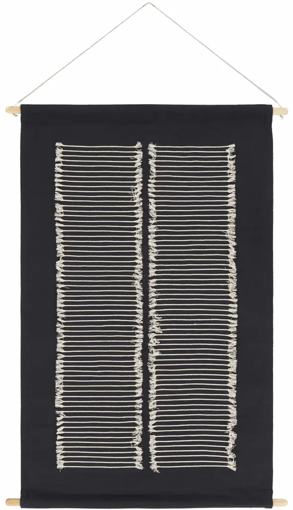 Multicolor Fiber Wall Tapestry-Black And Cream Stripe 18x38 | Rectangle By Surya | Woven