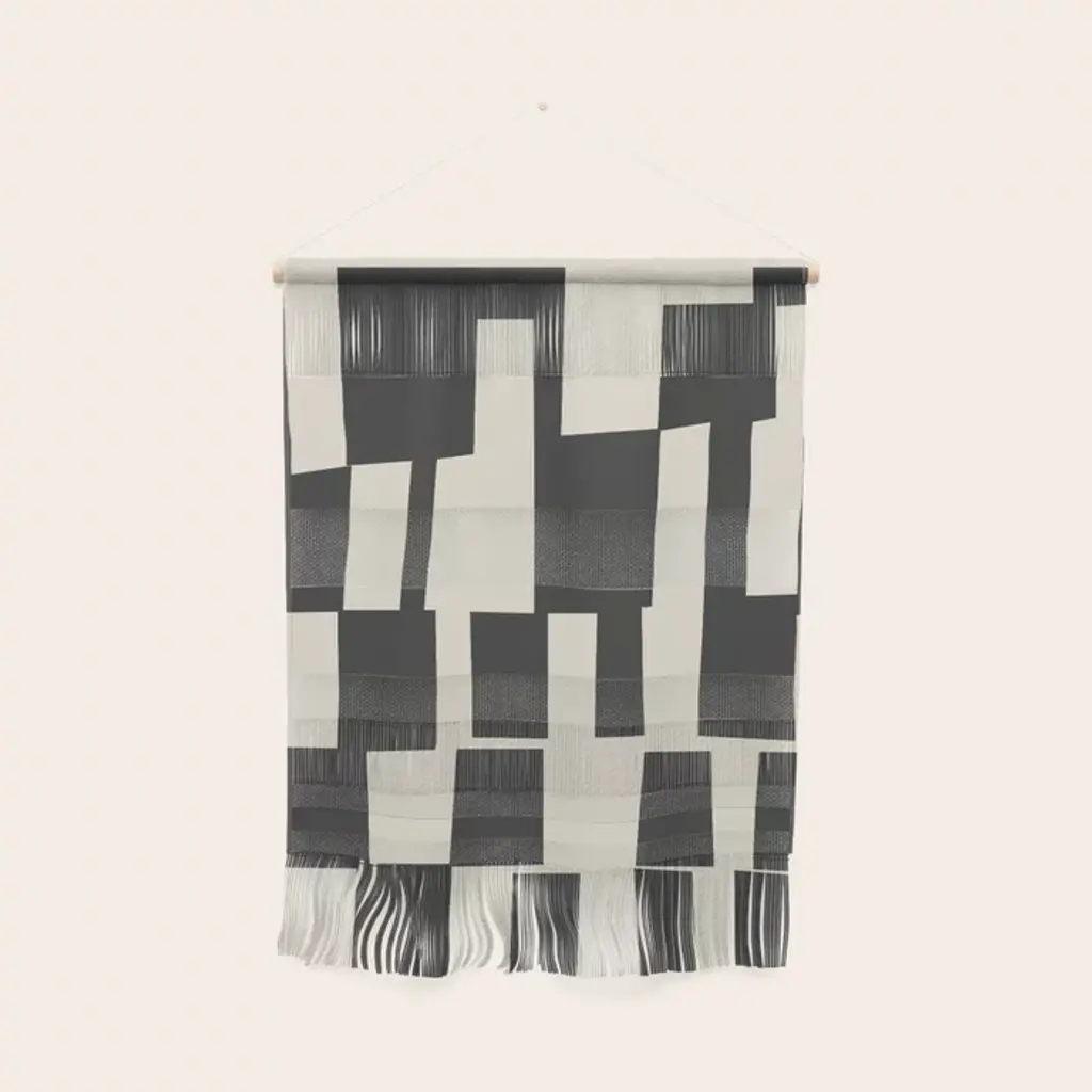 Enhance your living space with the Natural Fiber Wall Tapestry by Surya. This modern, embroidered piece features a striking black and cream color palette that adds a touch of sophistication to any room. Its rectangle shape and hanging loop make it easy to display, perfect for dorm rooms or any contemporary setting.