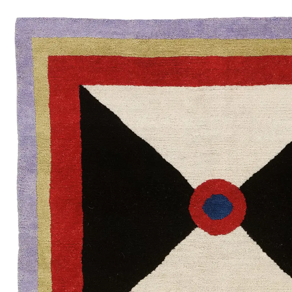 This one-of-a-kind carpet is part of a limited series of 36 pieces executed entirely by hand by skilled Nepalese artisans following a design by Nathalie Du Pasquier, who also signed each piece. The traditional methods employed to craft this carpet are part of the Tibetan tradition in which every step in the preparation of the wool, including the knotting and the final finishing touches, is executed by hand. The Tibetan wool used is also one of the finest in the world, durable and rich in lanolin. Handmade by craftsmen in Uma technique. Life's Commodities 2005 Collection.