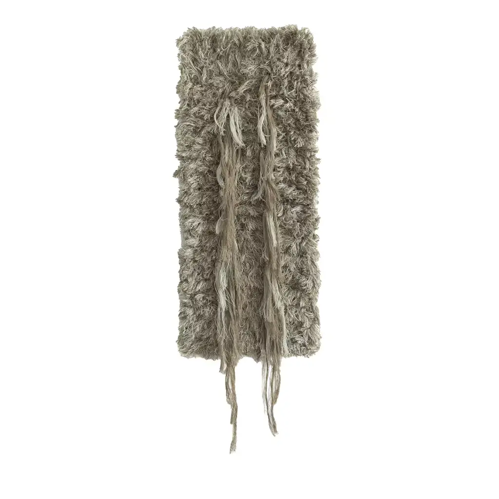 This handwoven tapestry showcases a bold off-center fringe and a gradient of blues, from deep to soft. Its rich texture and flowing strands create a striking visual contrast. Available as a standalone piece or paired with NOLOOM | Surgis 013 (1/2) for a refined diptych in shades of white, cream, sage, and blue. Perfect for elevating an entryway or living space, it was featured in the 2024 Buchillon exhibition for its unique craftsmanship.