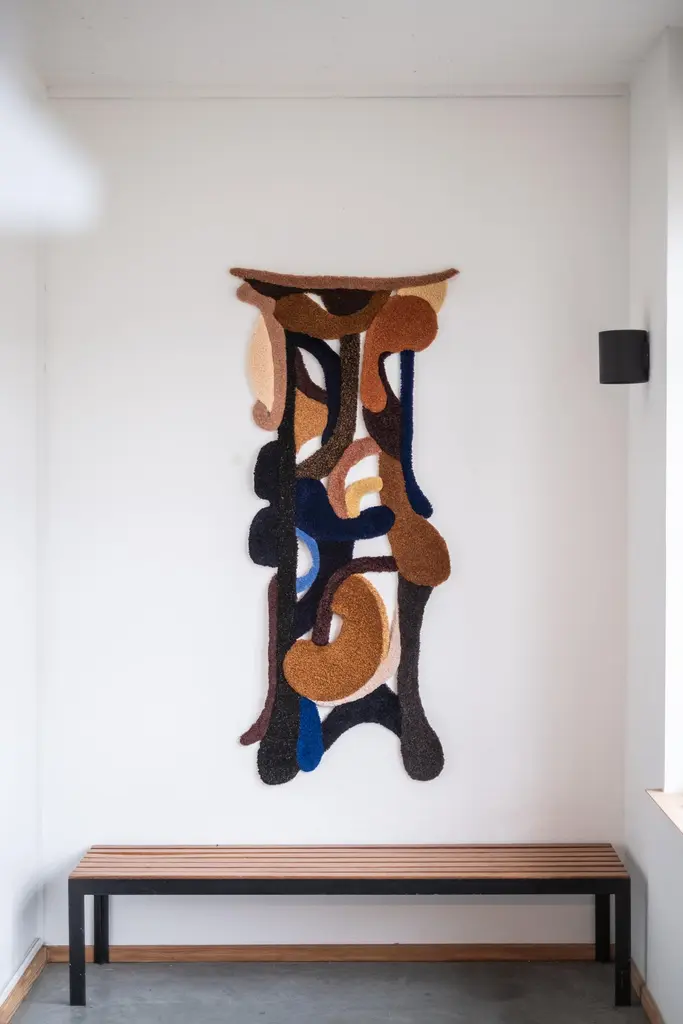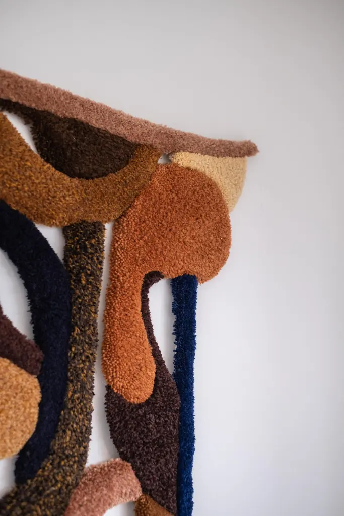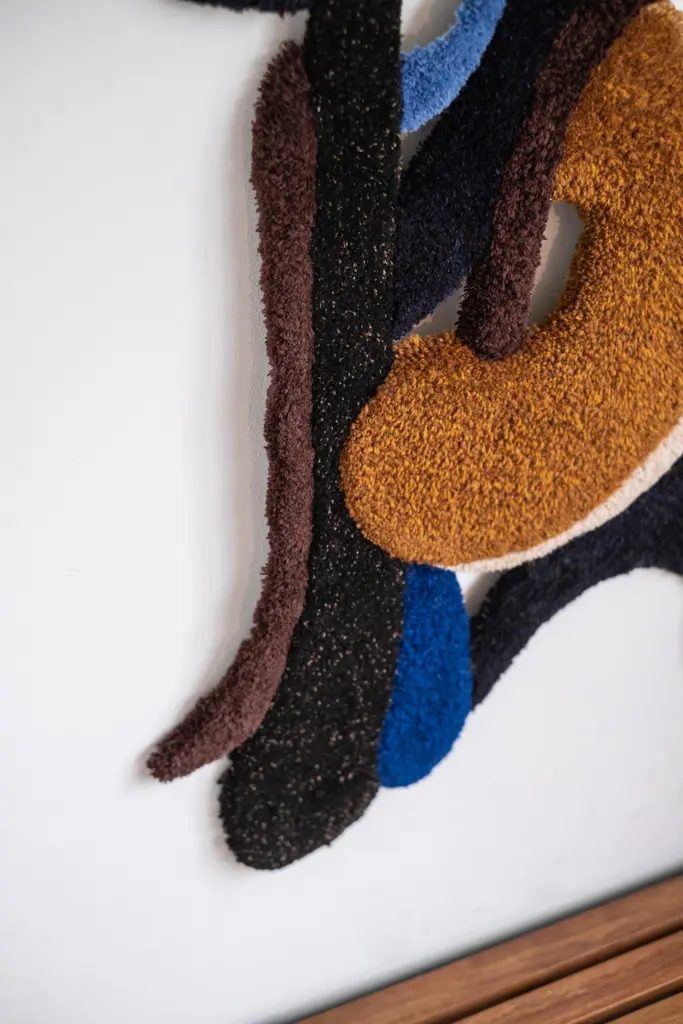 Opus XLIV handmade wool tapestry by Mira SohlenDimensions: D 80 x H 174 cmMaterials: woolWeight: 8 kgOpus XLIVEach tapestry is called Opus followed by its chronological roman numeral in the order they were created. Opus is a latin word meaning a work, used to mean a particular piece of music by a composer. Furthermore, when Mira creates her tapestries she never envisions the final outcome; her vision is her process. Throughout the process, similar to the one of a musical composer, she aims to find patterns of beauty of form, harmony, and expression of emotion. It is as if different shapes are dancing and her aim is to capture just the right moment where Opus becomes a visual and tactile form of music. Mira Sohlén creates tapestries which are made from a unique method of tiling.Mira Sohlén (b. 1991) is a designer and artist based in Antwerp, Belgium. Originally from Sweden, Mira grew up in Paris and then studied fashion design both at the Amsterdam Fashion Institute and at the Gerrit Rietveld Academie.