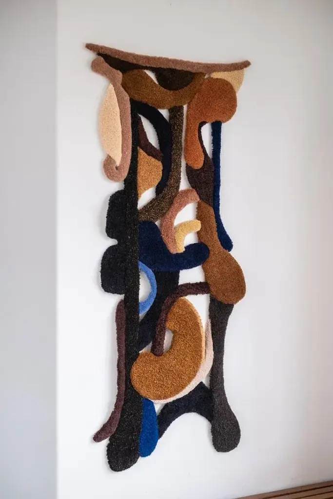 Opus xliv handmade wool tapestry by mira sohlen dimensions: d 80 x h 174 cm materials: wool weight: 8 kg opus xliv each tapestry is called opus followed by its chronological roman numeral in the order they were created. Opus is a latin word meaning a work, used to mean a particular piece of music by a composer. Furthermore, when mira creates her tapestries she never envisions the final outcome; her vision is her process. Throughout the process, similar to the one of a musical composer, she aims to find patterns of beauty of form, harmony, and expression of emotion. It is as if different shapes are dancing and her aim is to capture just the right moment where opus becomes a visual and tactile form of music.