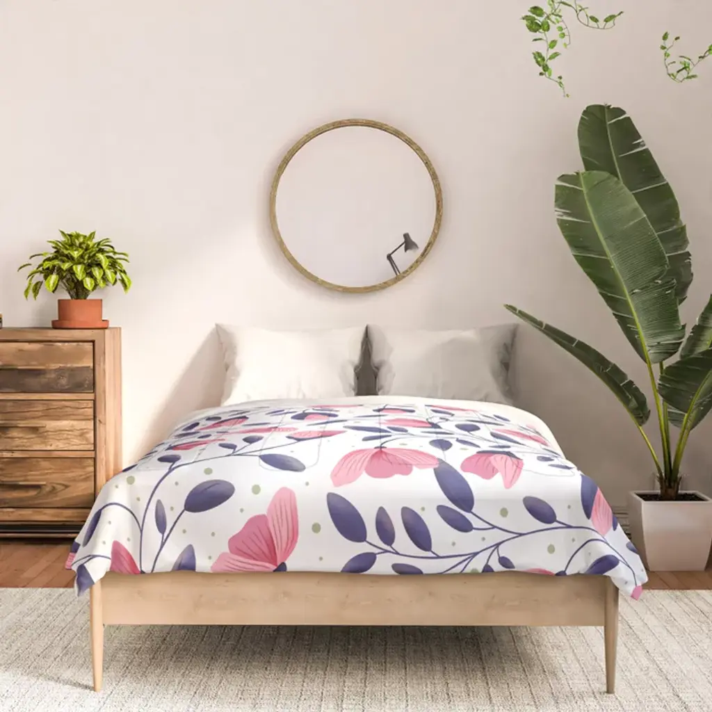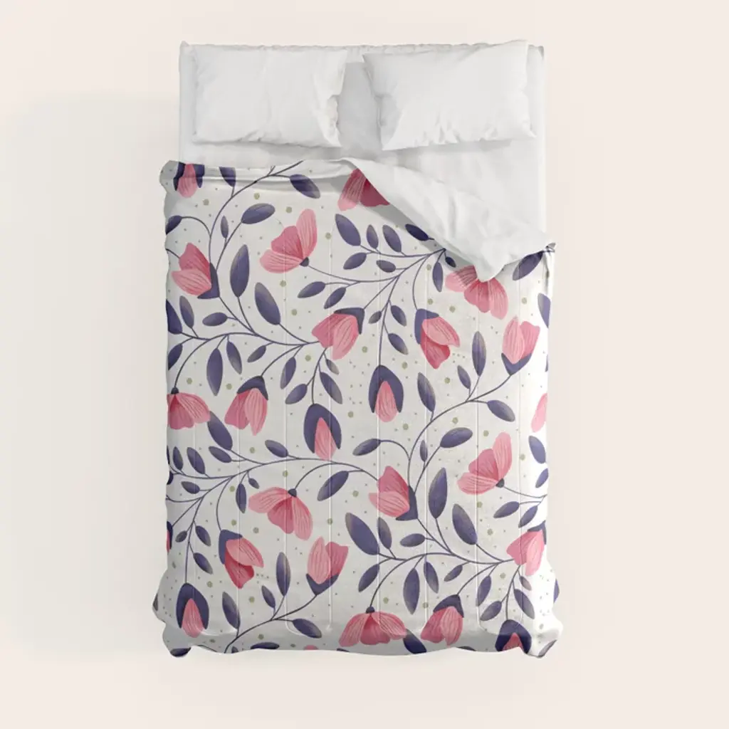 Pink And Blue Floral Tapestry, Poppy Seamless Pattern Comforter