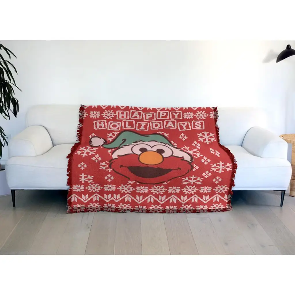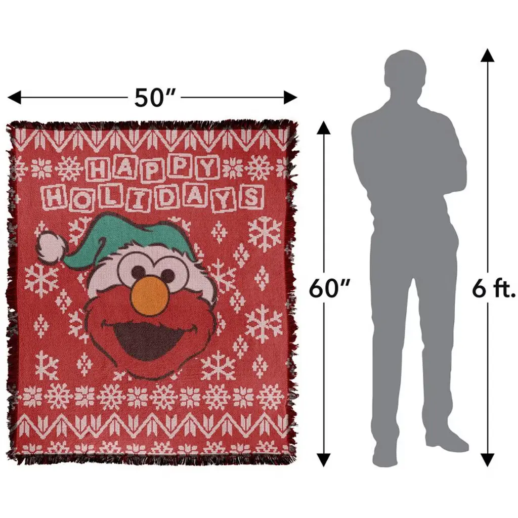 Sesame Street Elmo Ugly Christmas Blanket 50"x60" Woven Tapestry