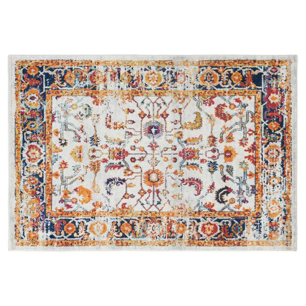 Our Silver City Tapestry Rug is full of texture and style, showcasing a classic tapestry-style pattern woven in pastel shades of gold, coral, sky blue, violet and butterscotch along with cool neutrals. Nicely textured, this rug feels wonderful underfoot, and makes an eye-catching addition to any room of your home. The rug's pile is approximately ¼" ensuring ample clearance for most doorways. Durable polypropylene offers long-lasting quality and is easy care. Resistant to stains and fading, this rug is ideal for heavy traffic and households with kids or pets. Sizes are approximate, and patterns will vary slightly by size. Use with a rug pad. Imported.