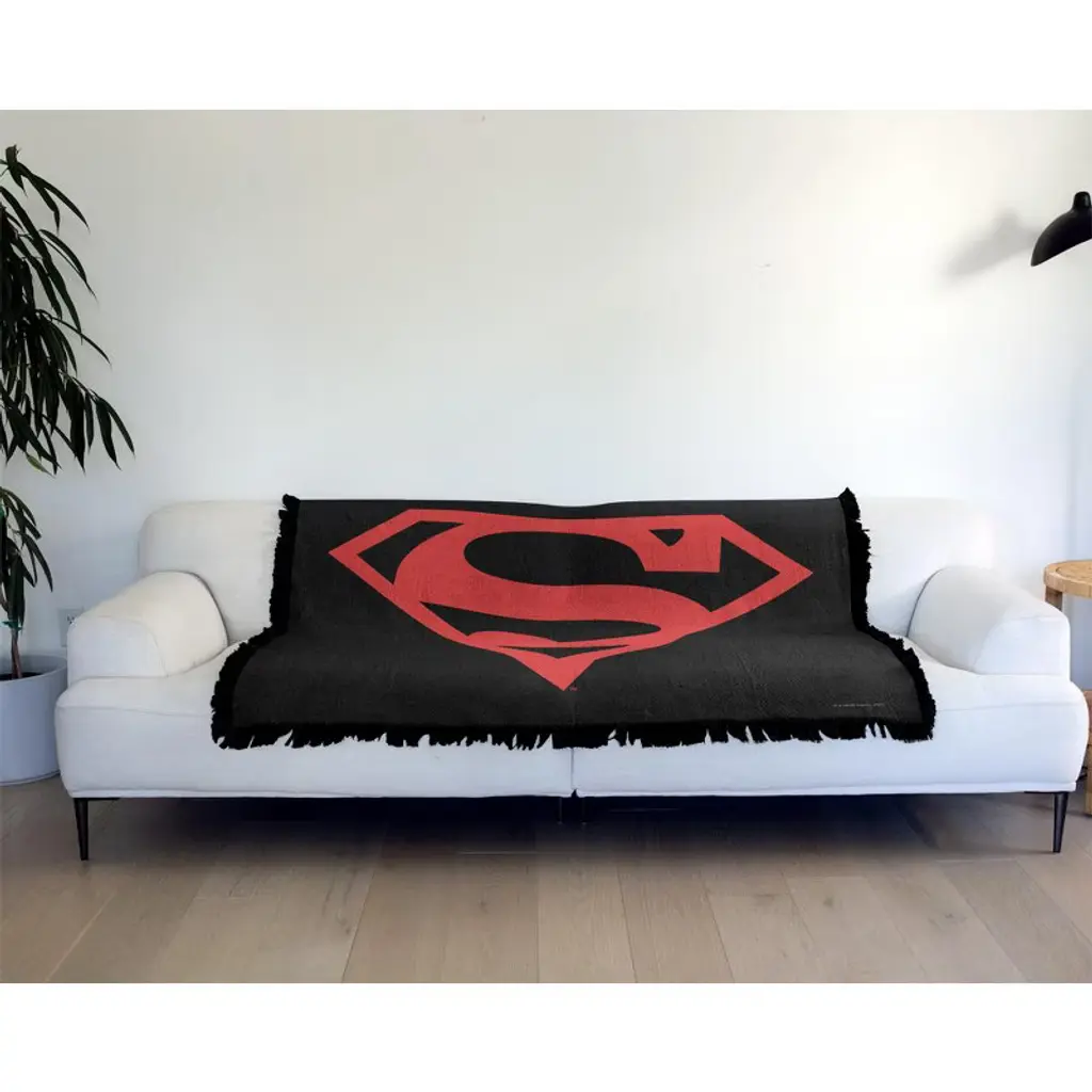 Superman Red On Black Shield Blanket 50"x60" Woven Tapestry