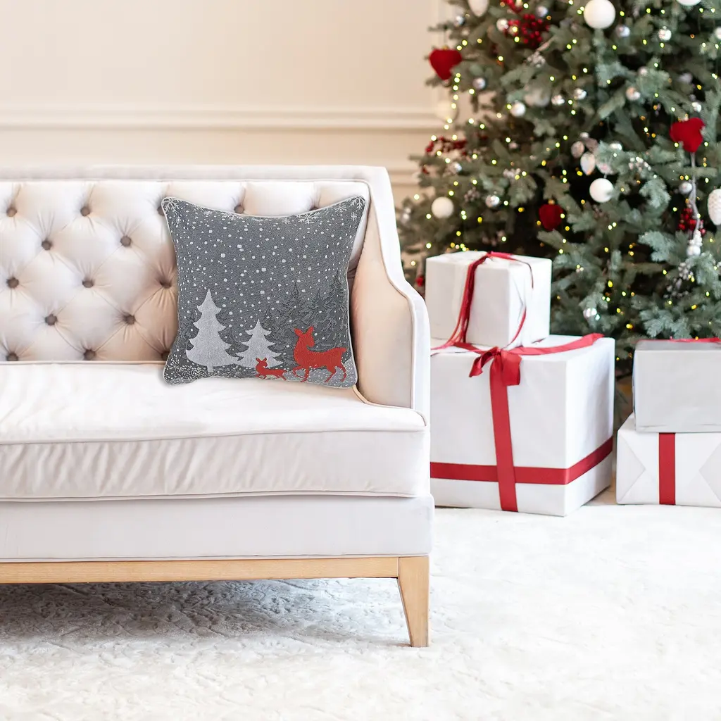 Tapestry Cushion Reindeer And Tree 18 X 18 - Set Of 2 - Red