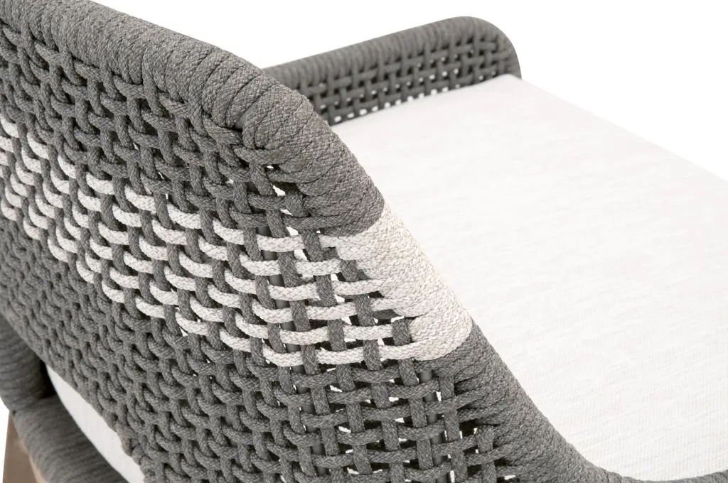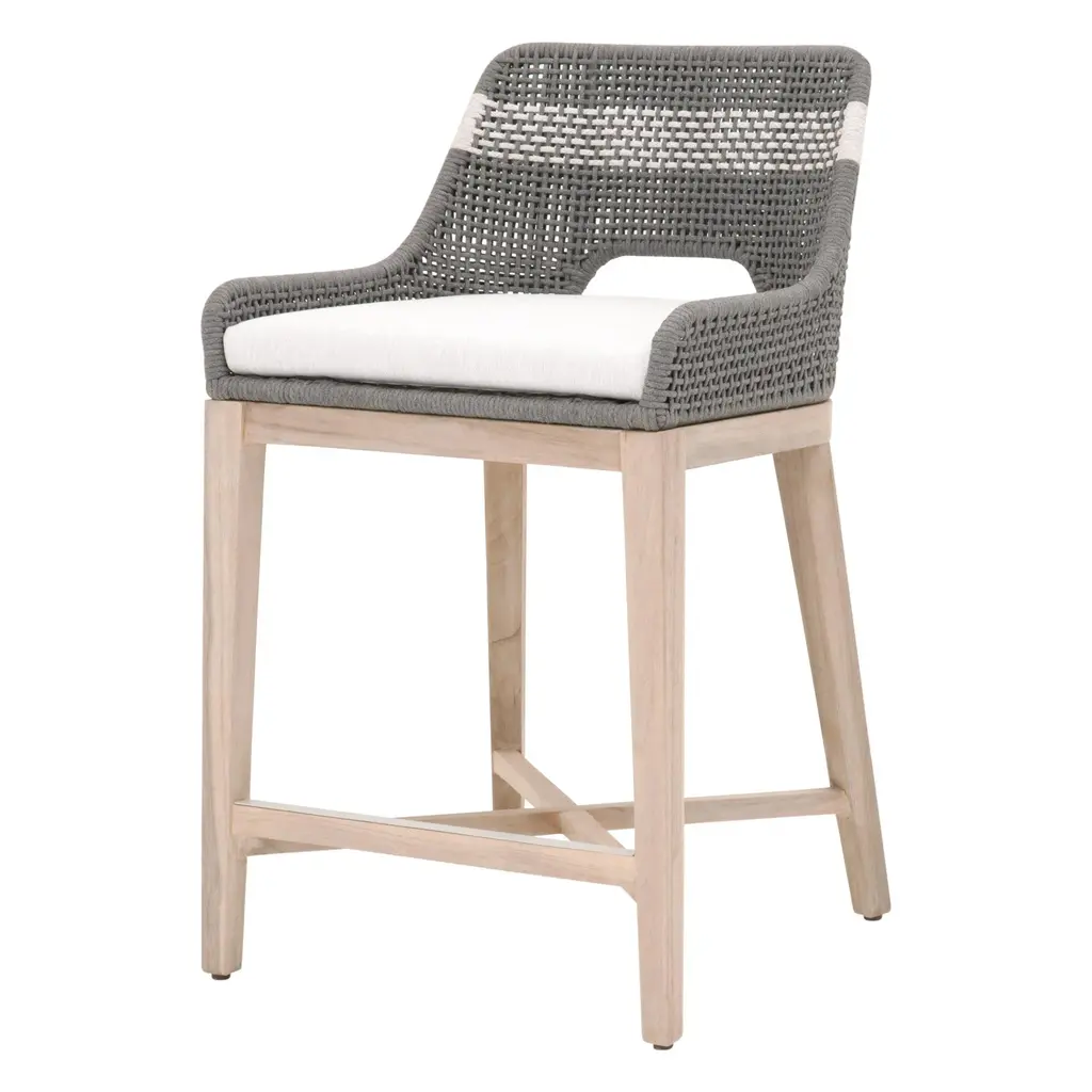 Tapestry Grey Teak Outdoor Counter Stool, White Speckle Stripe & Dove Rope
