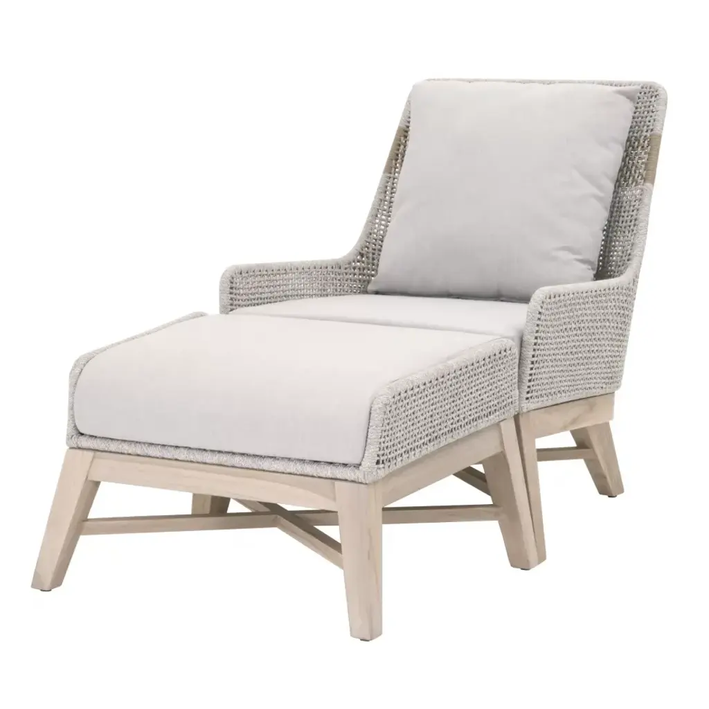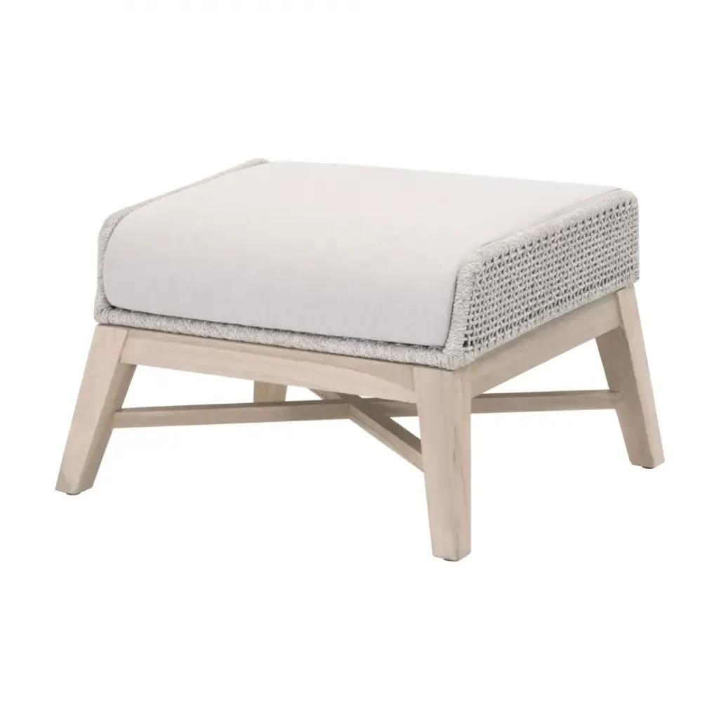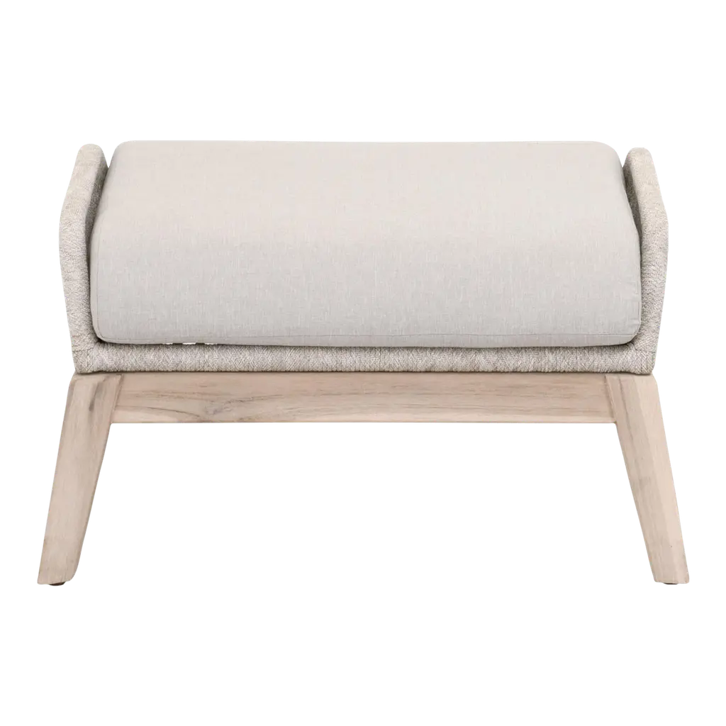 Tapestry Outdoor Footstool Taupe & White Flat Rope, Performance Pumice, Gray Teak