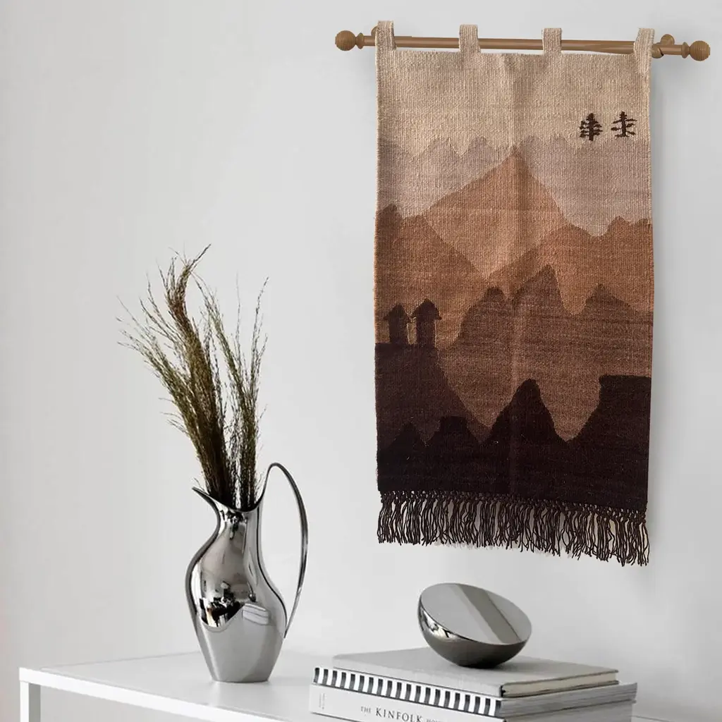 This tapestry wall hanging brings texture and elegance to your living space with a large abstract landscape wall art design inspired by Lesotho’s mountains. Handwoven with care, this decorative wall hanging tapestry complements modern, minimalist, and farmhouse interiors. Ideal as a wall hanging tapestry or tapestry hanging, it’s available in medium, large, and extra large landscape wall art sizes. Perfect for the living room, bedroom, or entryway. Hanging rod required., The wall tapestry hanging adds warmth and softness, enhancing the ambiance in a room., Ethically crafted large wall tapestry hanging with eco-friendly materials, perfect for those seeking responsible luxury. , Large landscape wall art will introduce a serene aesthetic on large walls in a living room, bedroom or entryway.