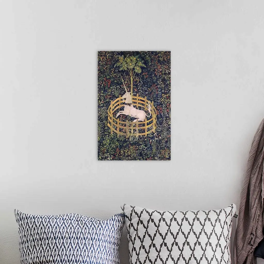 The Unicorn in Captivity, from the Unicorn Tapestries, Netherlands, 1495?1505, tapestry in wool with silk and silver, 251.5 x 368 cm (99 x 144.9 in), The Cloisters, Metropolitan Museum of Art, New York. | Located in: The Cloisters.
