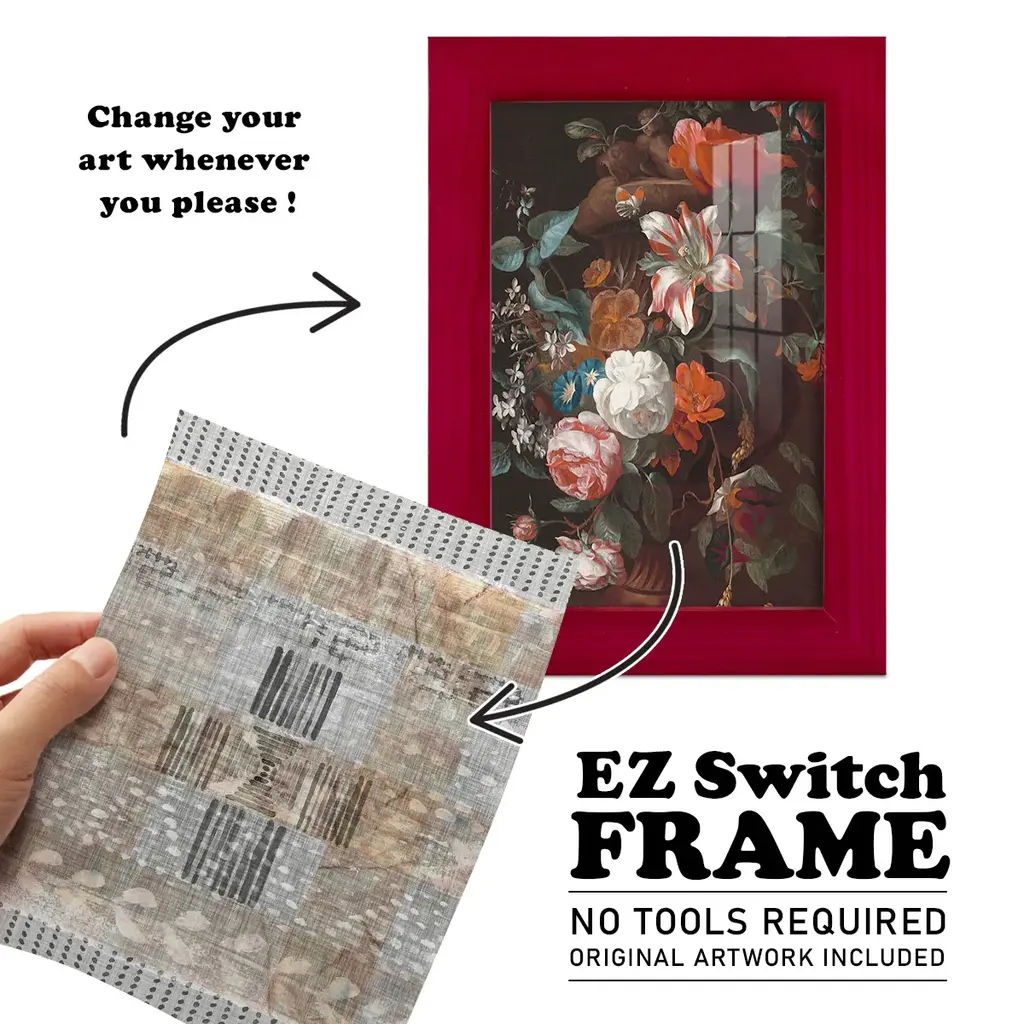 Traders Tapestry II -EZ SWITCH Framed Print w/glass-Cherry Red A delightful, framed print. Featuring a solid wood frame with real wood glass. This premium print is giclee quality. In addition, every frame features a removable back and table top stand. This allows you to change your art in the future or to just stand the art on a table for a new look. We are sure you'll enjoy our new series of EZ SWITCH Framed Art. Solid Wood Frame Real Glass Removable / Replaceable Art Built in Tabletop Stand Sizes range from 4x6 up to 12x15 - buy just one or pair them up as sets as you see fit.
