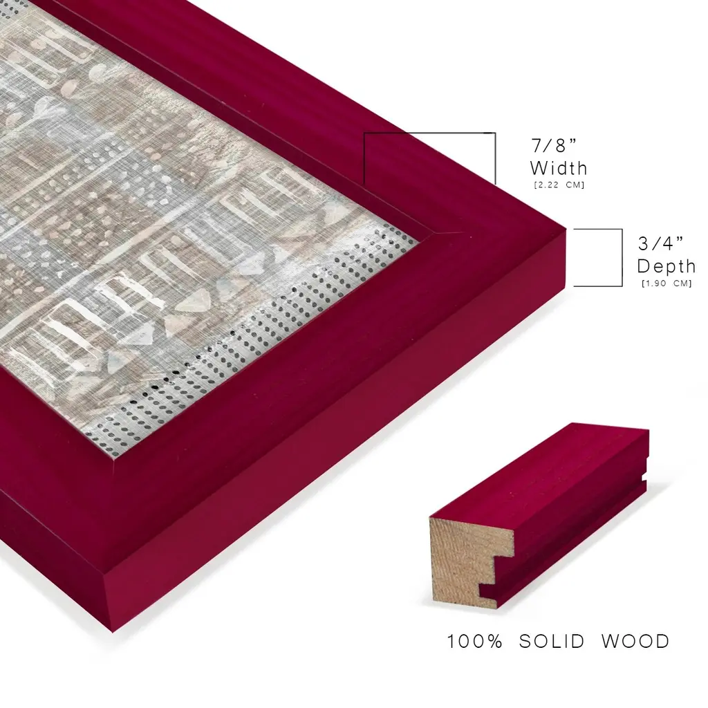 Traders Tapestry IV -EZ SWITCH Framed Print w/glass-Cherry Red A delightful, framed print. Featuring a solid wood frame with real wood glass. This premium print is giclee quality. In addition, every frame features a removable back and table top stand. This allows you to change your art in the future or to just stand the art on a table for a new look. We are sure you'll enjoy our new series of EZ SWITCH Framed Art. Solid Wood Frame Real Glass Removable / Replaceable Art Built in Tabletop Stand Sizes range from 4x6 up to 12x15 - buy just one or pair them up as sets as you see fit.