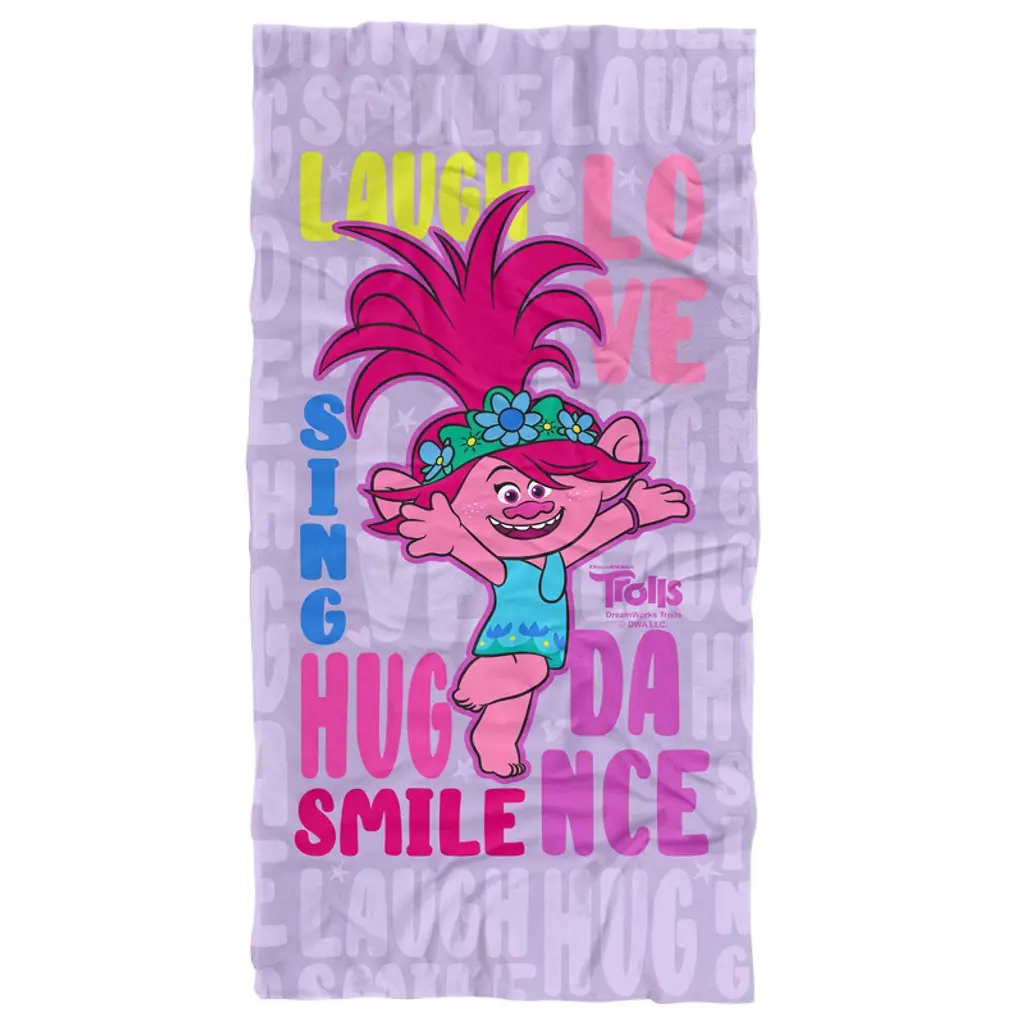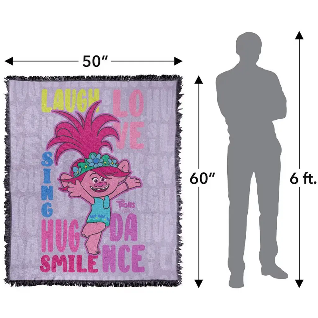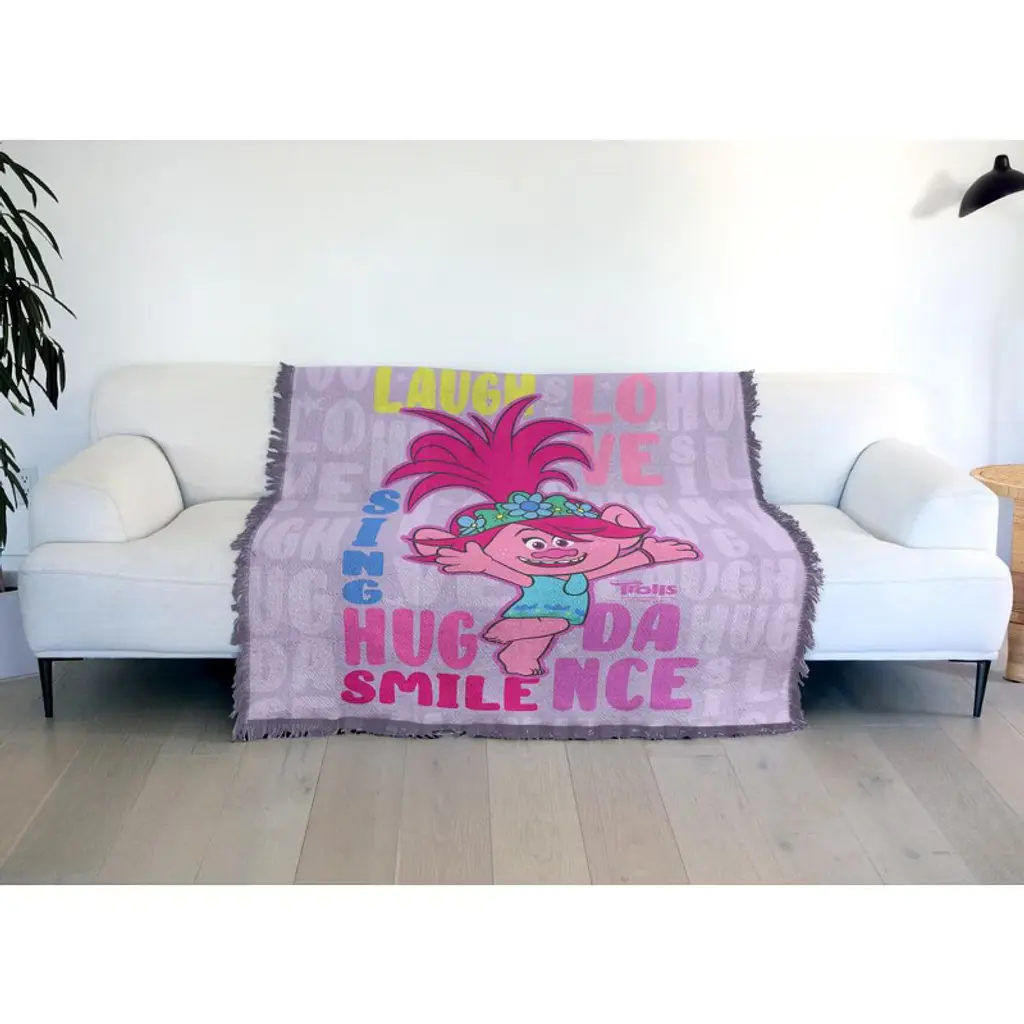 Trolls Poppy Love Laugh Sing Blanket 50"x60" Woven Tapestry