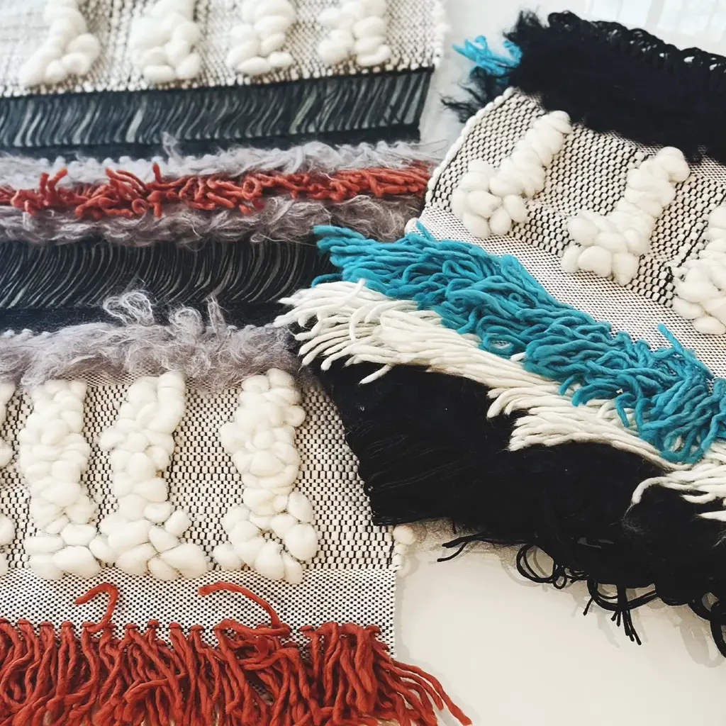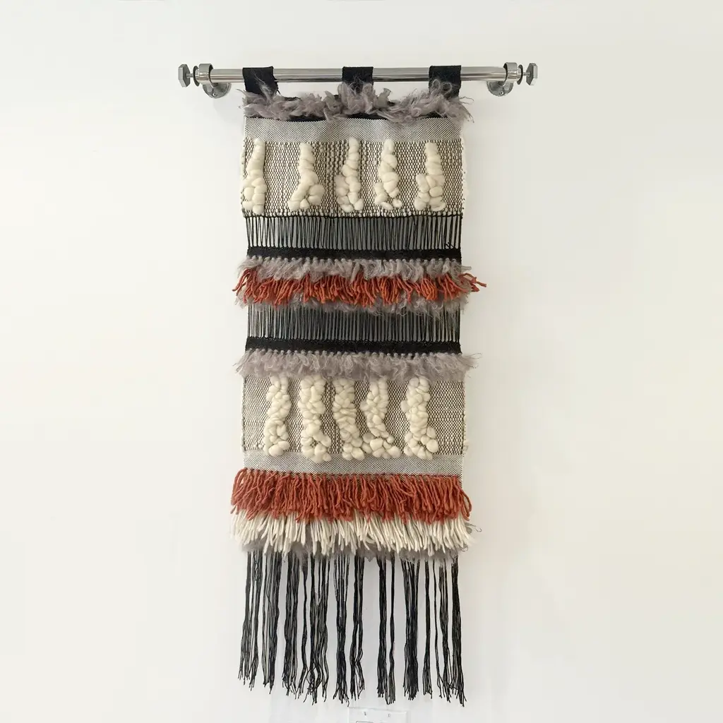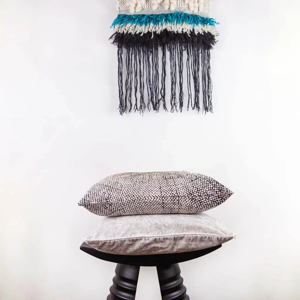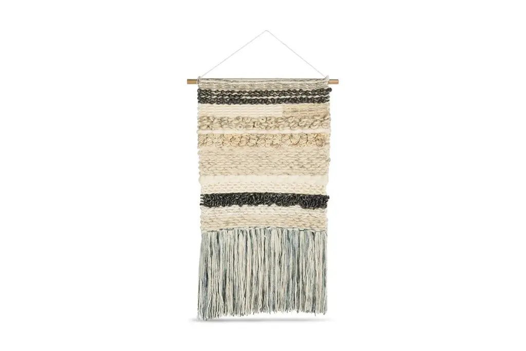 The Turquoise Afro boho tapestry is inspired by decorative tapestries often displayed in homes in South Africa. This wall decor accent is designed in Brooklyn, New York, and expertly woven by hand using a variety of weaving techniques by a mother and daughter run studio in Cape Town, South Africa. The tapesty’s wool is ethically sourced and dyed with non-toxic, natural dyes. Hang this modern Afro boho tapestry above a bed of couch to create a captivating backdrop. Requires a hanging rod.