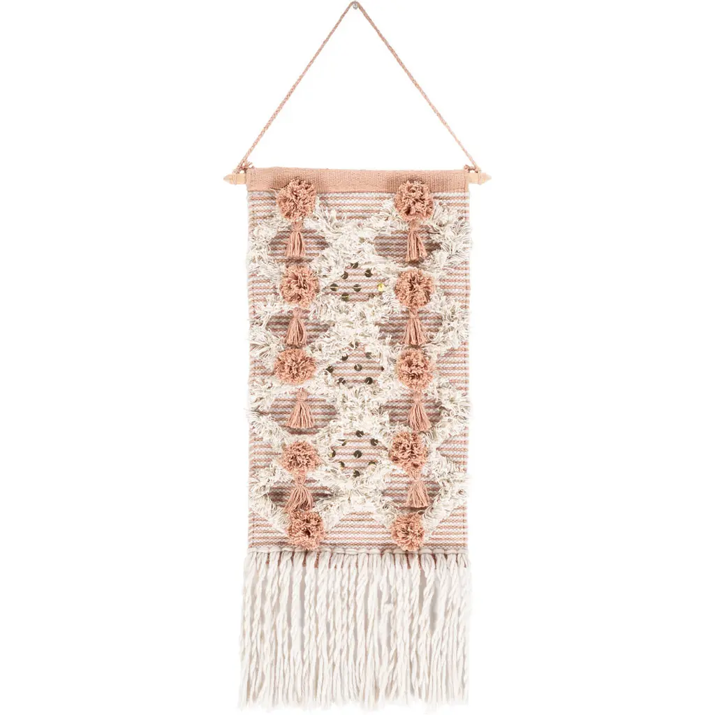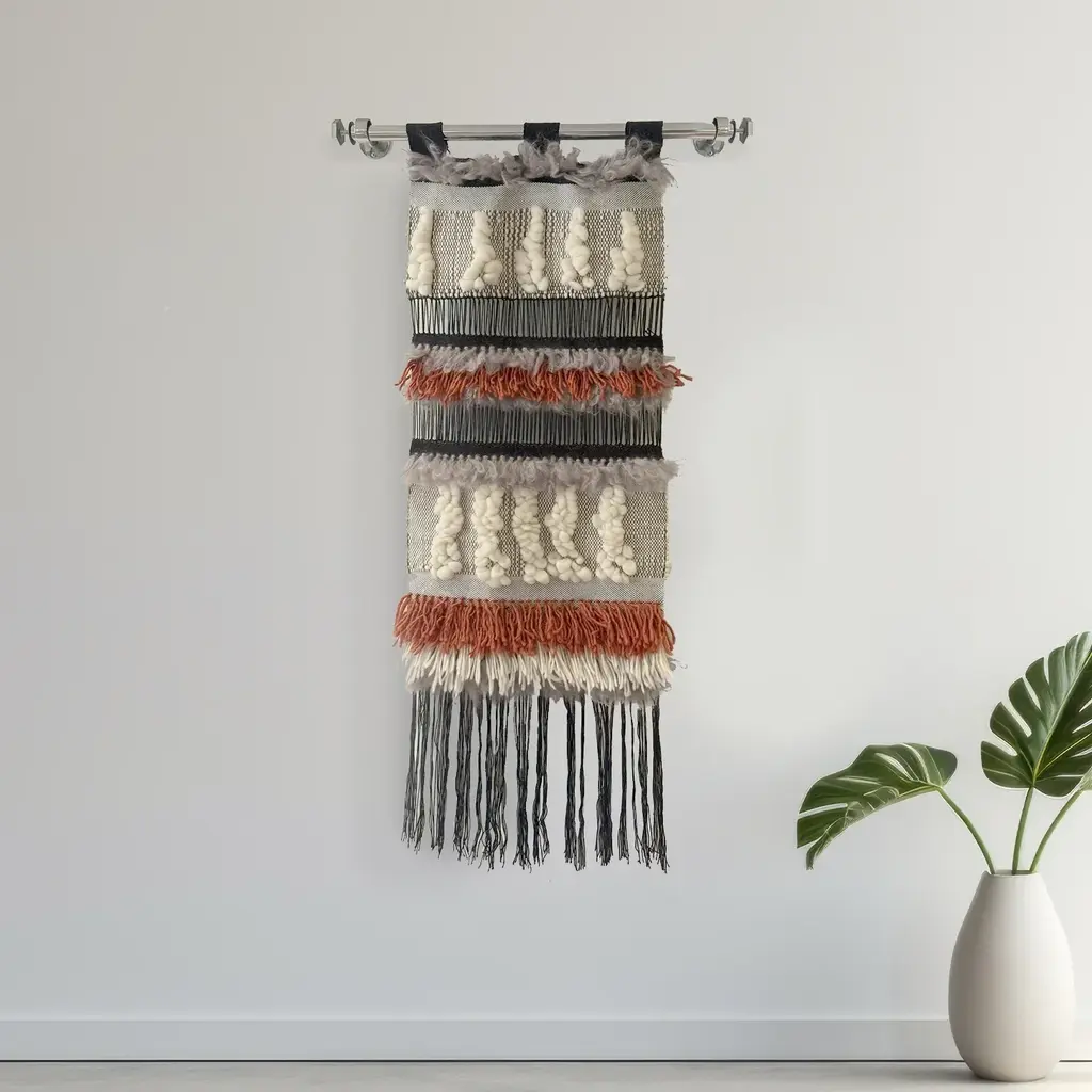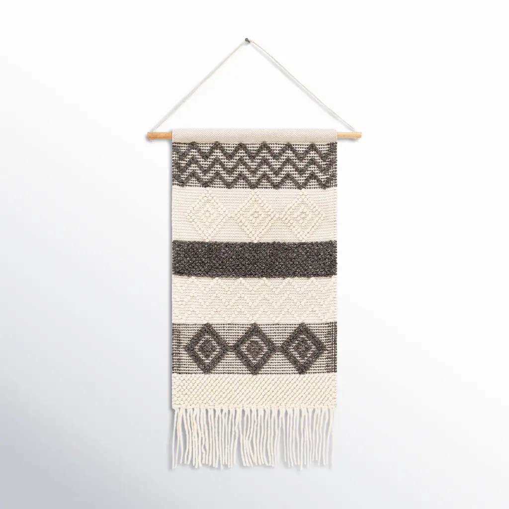 The Turquoise Afro boho tapestry is inspired by decorative tapestries often displayed in homes in South Africa. This wall decor accent is designed in Brooklyn, New York, and expertly woven by hand using a variety of weaving techniques by a mother and daughter run studio in Cape Town, South Africa. The tapesty’s wool is ethically sourced and dyed with non-toxic, natural dyes. Hang this modern Afro boho tapestry above a bed of couch to create a captivating backdrop. Requires a hanging rod.