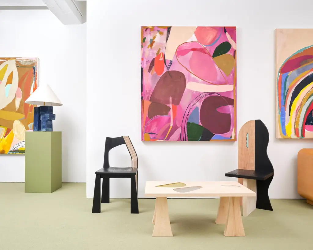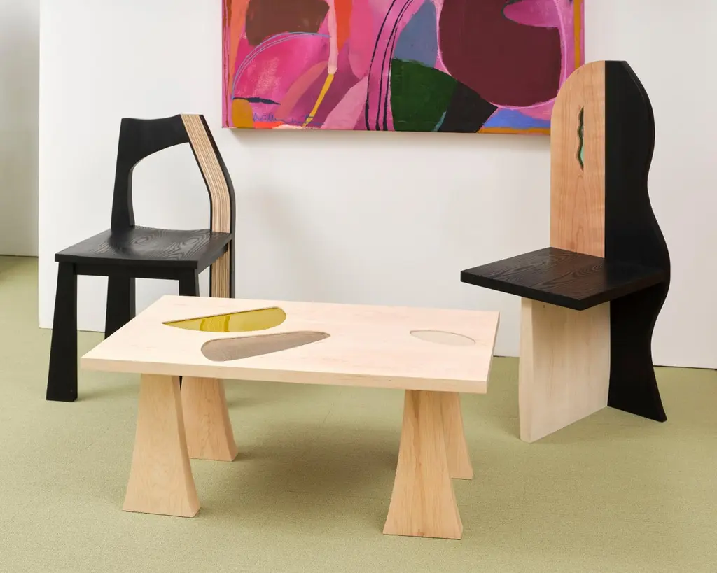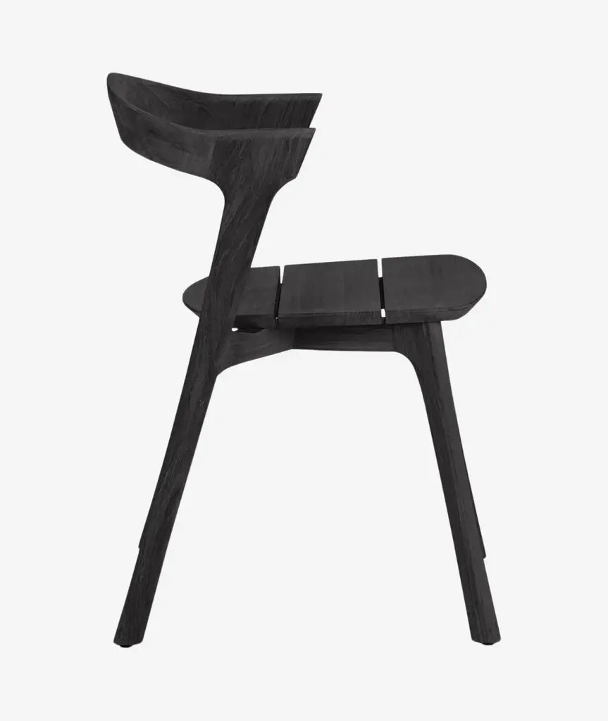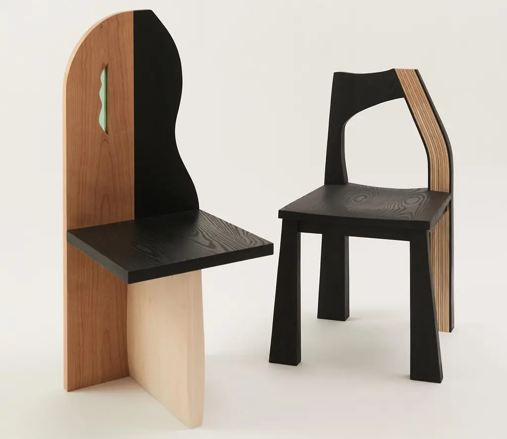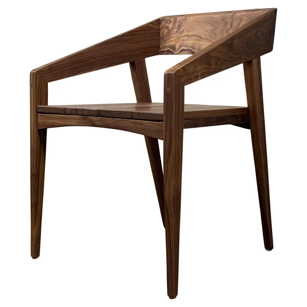 The Tapestry chair is inspired by delicately draped textiles. The gentle curve of the back provides a composition similar to that of a drawn curtain, and creates softness out of a typically rigid material. This chair is made of solid hand-carved ash and dyed using India ink. The contrasting striped back is made using a process of stack lamination with white and black veneer. Designed to be used as a dining chair, the Tapestry is handmade in Brooklyn and can be customized in different wood species, finishes, and sizes.