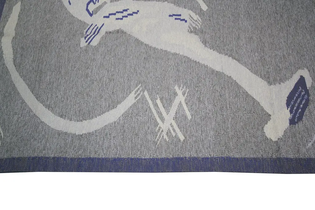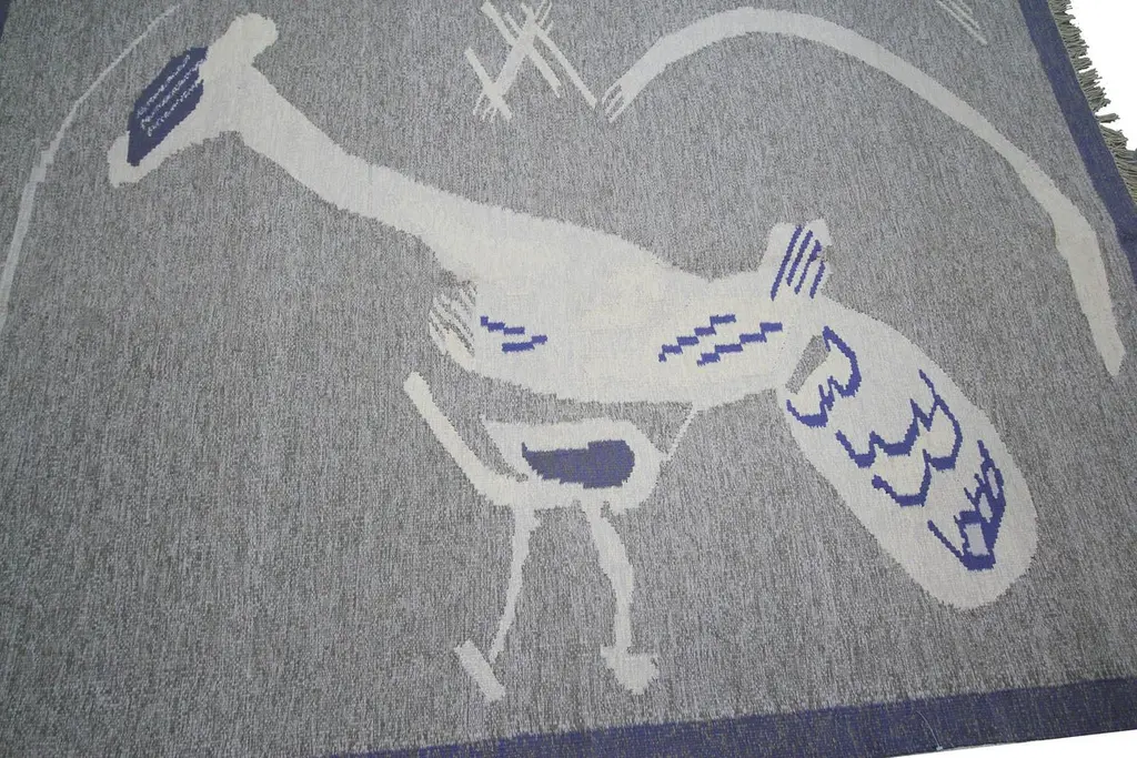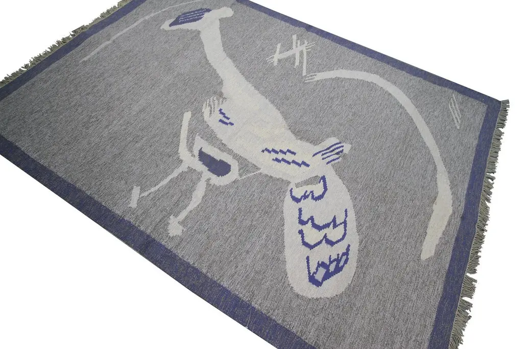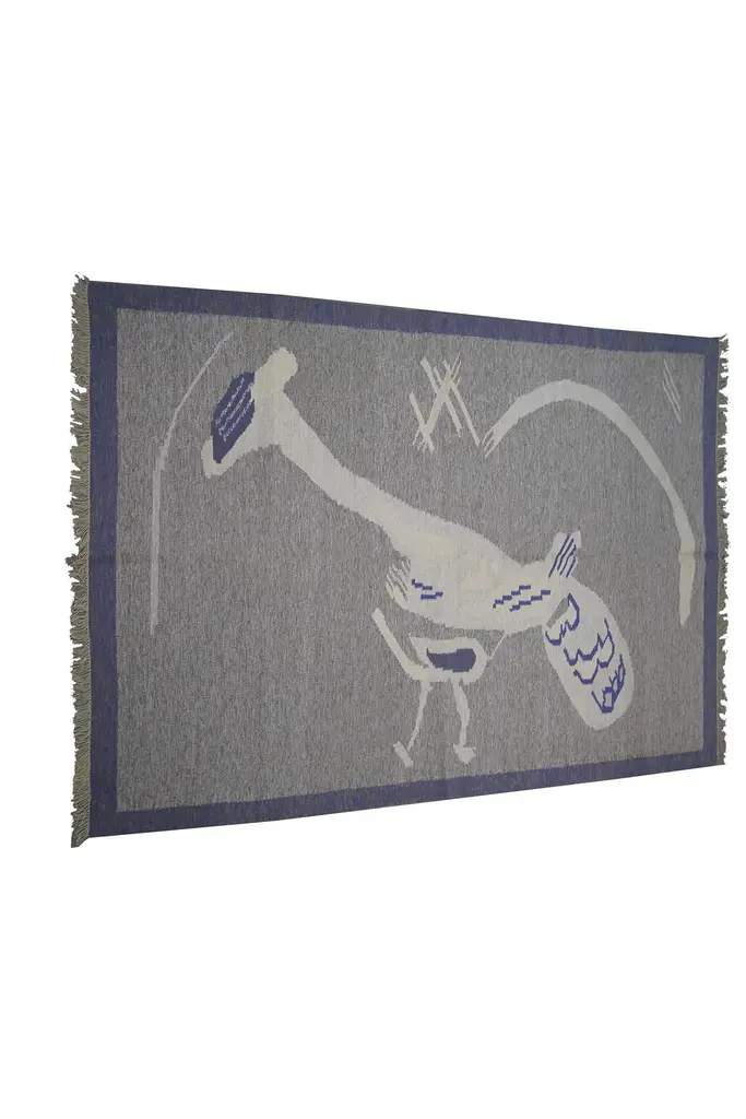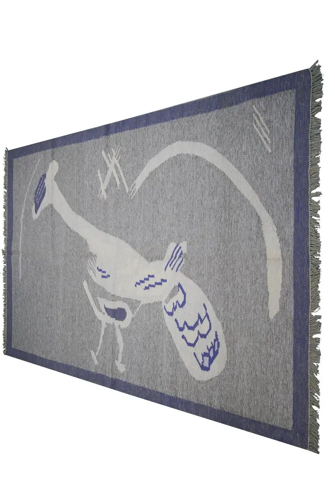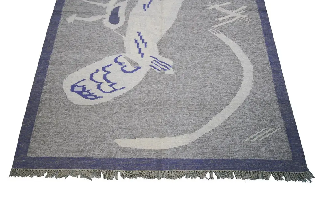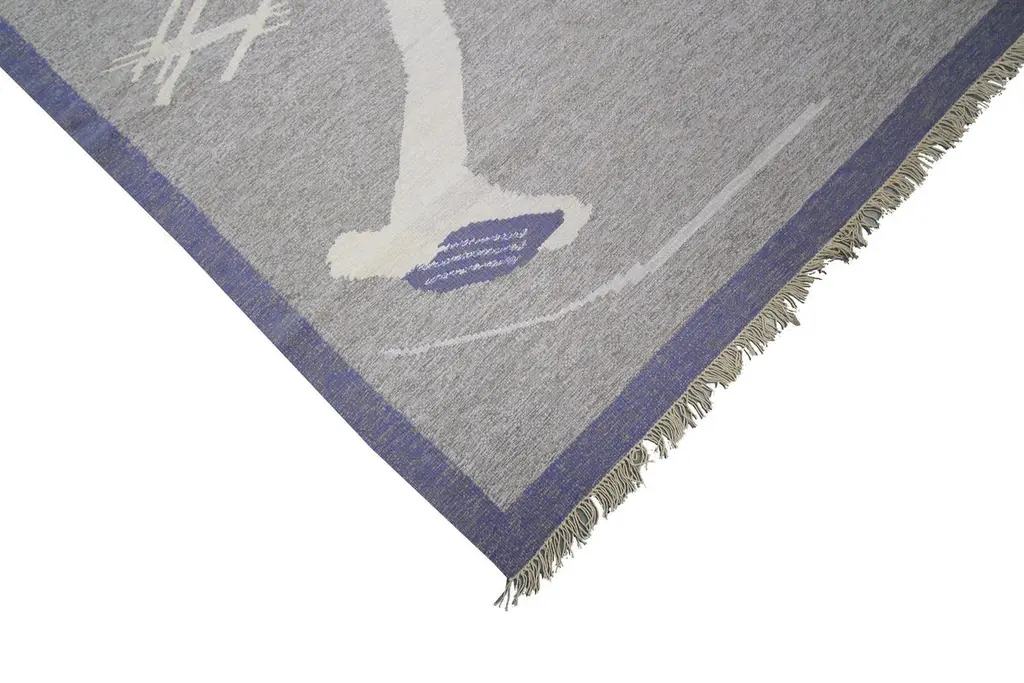 Vintage European Kilim Flatwoven Rug Art Nouveau Signed Tapestry 5'2" x 7'3" 158cm x 221cm"This is a beautiful Vintage European Rug tapestry. This magnificent Flat woven rug Tapestry has great character, artistic Art Nouveau bird design, and is superb condition. It's a fabulous decorative piece!"Size5'2" x 7'3" 158cm x 221cmSerial ID #10875kDesignBird DesignMetric Size158cm x 221cmDesignGeometric Art NouveauCategoryFlat WovenPatternGeometricMaterial100% WoolFoundation MaterialWoolColorGrey, Purple, IvoryQuality GreatConditionSuperb condition, minute low area About Us~Welcome to Antique Rug Collection. Your #1 Source for handmade Antique Rugs & Tapestries at great prices, curated by leading industry expert.We are a 6th Generation antique rug shop with 48+ years of experience working with designers, private clients, dealers, and really anyone looking for a unique antique rug at a great price.We've made an imprint selling rugs across the globe in Europe, Asia, and the United States. We've been catering to private clients and designers across the world, and now we're proud to say, we're completely digital.Client satisfaction is our number one priority. We want you to love your purchase as well as our service.Love,The Team.