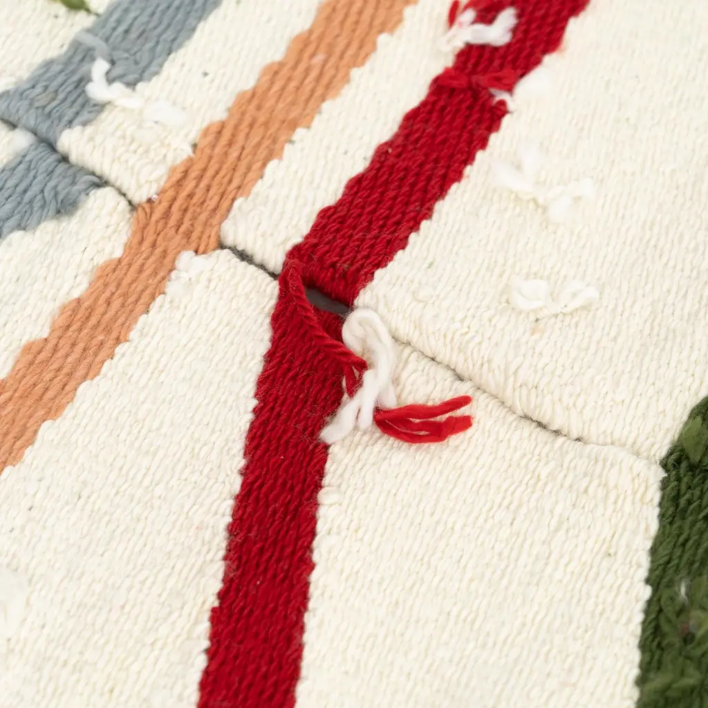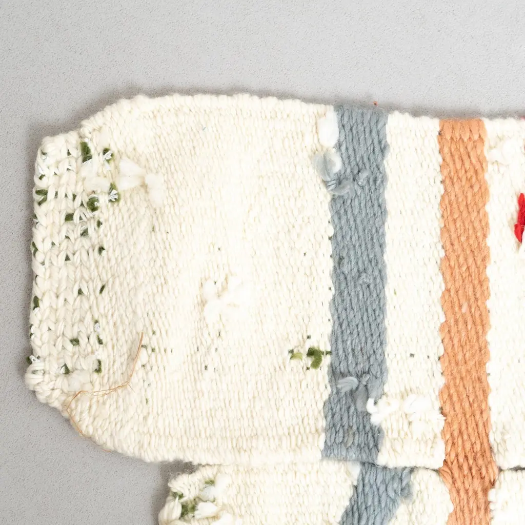 Wall Tapestry – Geometric Composition from the 70sThis wall tapestry, created in France around 1970 by an unknown artist, is a textile work of art that stands out for its exceptional craftsmanship and attractive geometric composition. Its vibrant and original design makes it a unique piece, ideal for those looking to add a retro touch to their decor.Versatile in use, this tapestry can adorn a wall, floor, or any other surface, although it currently does not have a hanging support. Preserved in good original condition, it shows signs of use typical of its age, preserving a lovely patina that enhances its character. Measuring 71 cm in height, 80 cm in width, and 0.5 cm in depth, this tapestry is perfect for enriching any space with style and color.