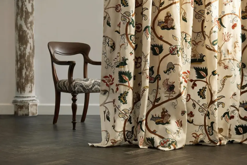 Zoffany is thrilled to introduce guest designer Livia Papiernik a graduate from the Royal School of Needlework (RSN) and subsequently London’s Royal College of Art.Her unique style incorporates an exquisite blend of pattern and storytelling paying homage to Jacobean embroidery and the heraldic beast statues which decorate Hampton Court Palace. This considered piece is embellished with hand finished detail and decorative stitching. 58% Cotton 42% Polyester. Sold by the yard. Part of the ARCADIAN THAMES Collection. Vertical Repeat: 29.9212598425197 Horizontal Repeat: 50.7874015748032 Aftercare Codes: No Machine Wash - SDC / No Ble / No tumb / W Iron / SDC (Spec) This item is non-refundable, but swatches are available for purchase. Colors can vary from screen to screen; we recommend ordering a swatch before placing your full size purchase. For any questions, please reach out to swatches@chairish.com