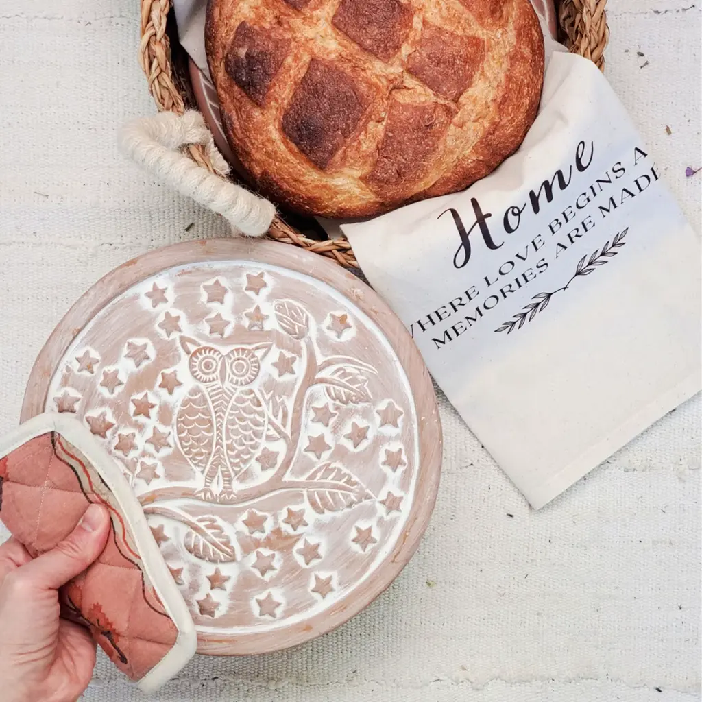 Bread Warmer Gift Box With Pot Holder, Tea Towel And Spoon - Owl Round