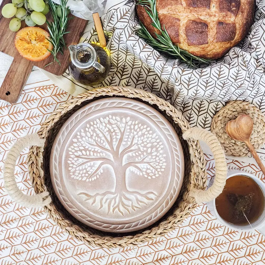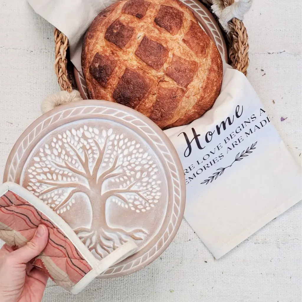 Bread Warmer Gift Box With Pot Holder, Tea Towel And Spoon - Tree Round
