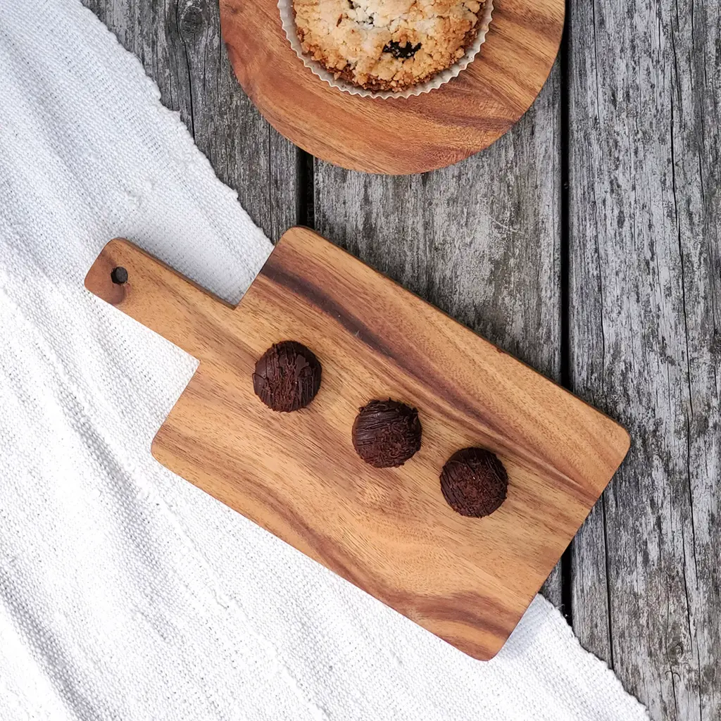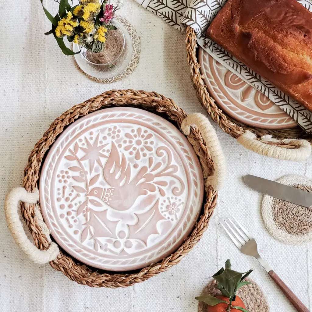 Bread Warmer Gift Box With Rectangular Wooden Board, Spoon & Dark Brown Tea Towel - Bird Round