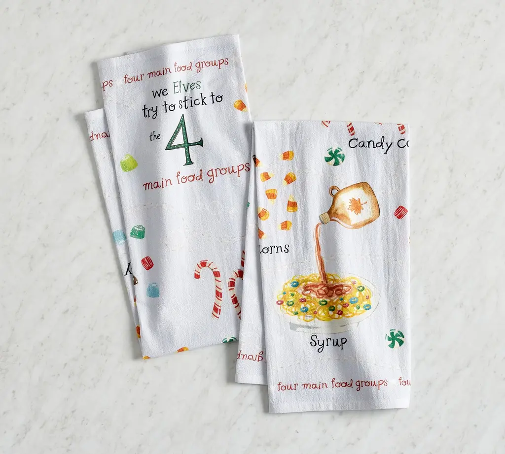 Elf Food Groups Cotton Tea Towels - Set Of 2