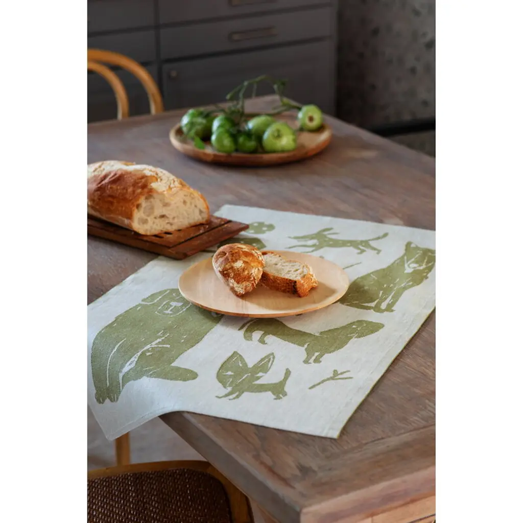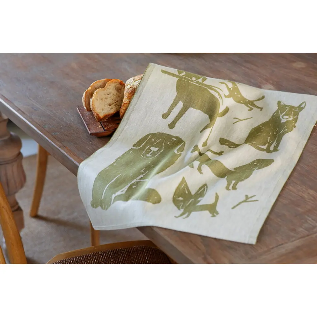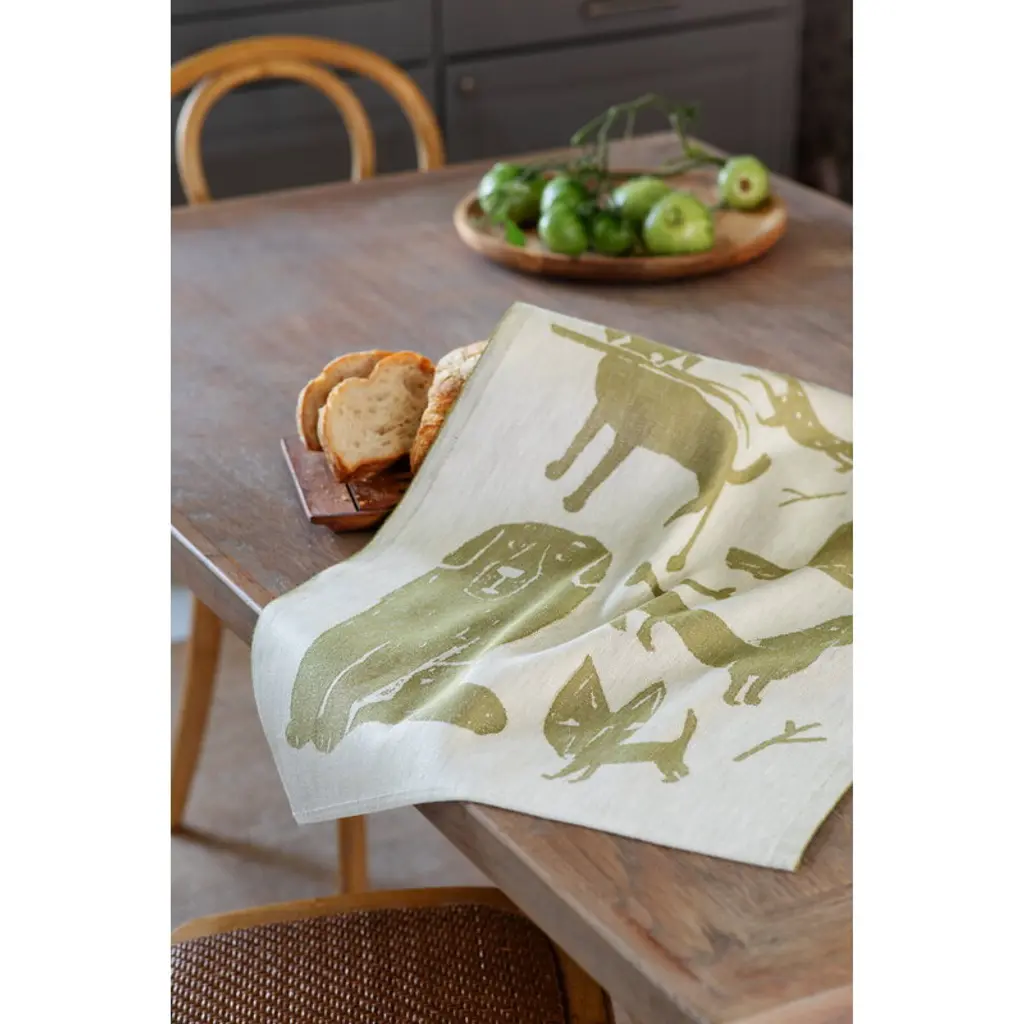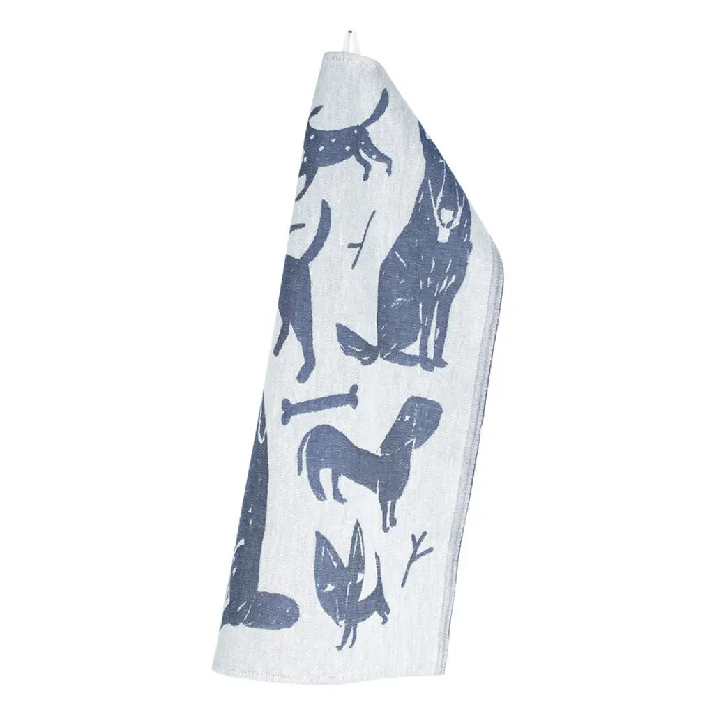 The Koirapuisto tea towel by Lapuan Kankurit is adorned with a joyful pack of dogs drawn by Finnish illustrator Matti Pikkujämsä. Koirapuisto is Finnish for ”dog park”. The two-tone color palette gives the towel a graphic appearance, and the pattern repeats on the other side with opposite colors. The tea towel is made of a high-quality blend of linen and cotton, and it has been woven in Finland at the own weaving mill of Lapuan Kankurit.
