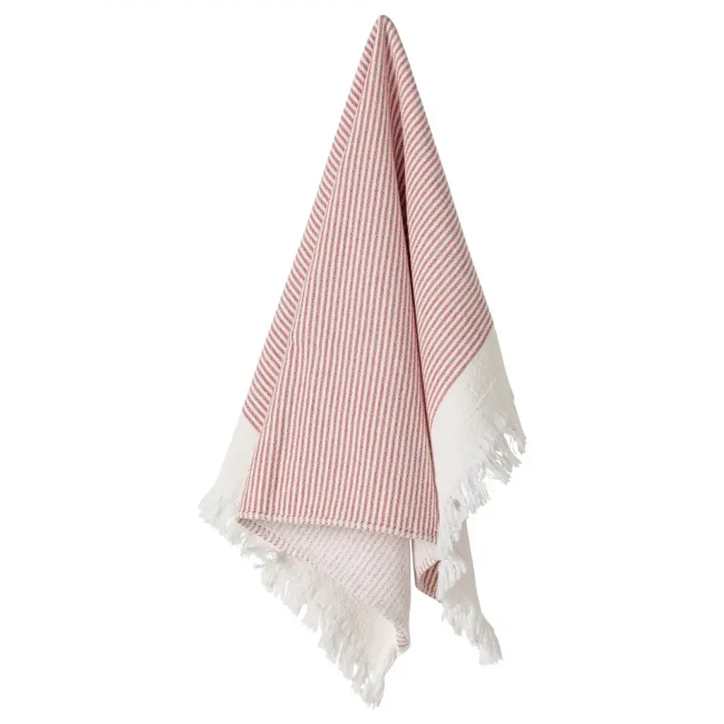 Bring some pasta love to your kitchen with this everyday essential. Crafted in Portugal from 100% cotton woven jacquard, this tea towel celebrates beloved Italian noodles. Printed with images of nine different types of pasta, from bowties to rigatoni, this red and pasta-yellow towel is a handy item to have around for everyday kitchen cleanups and tasks, such as unscrewing a jar lid or uncorking a bottle of sparkling wine. The fine weave of these European style jacquards creates distinctive designs that really stand out. The Pasta Cotton Jacquard Tea Towel measures 30l x 19”w. Machine wash warm, tumble dry low.